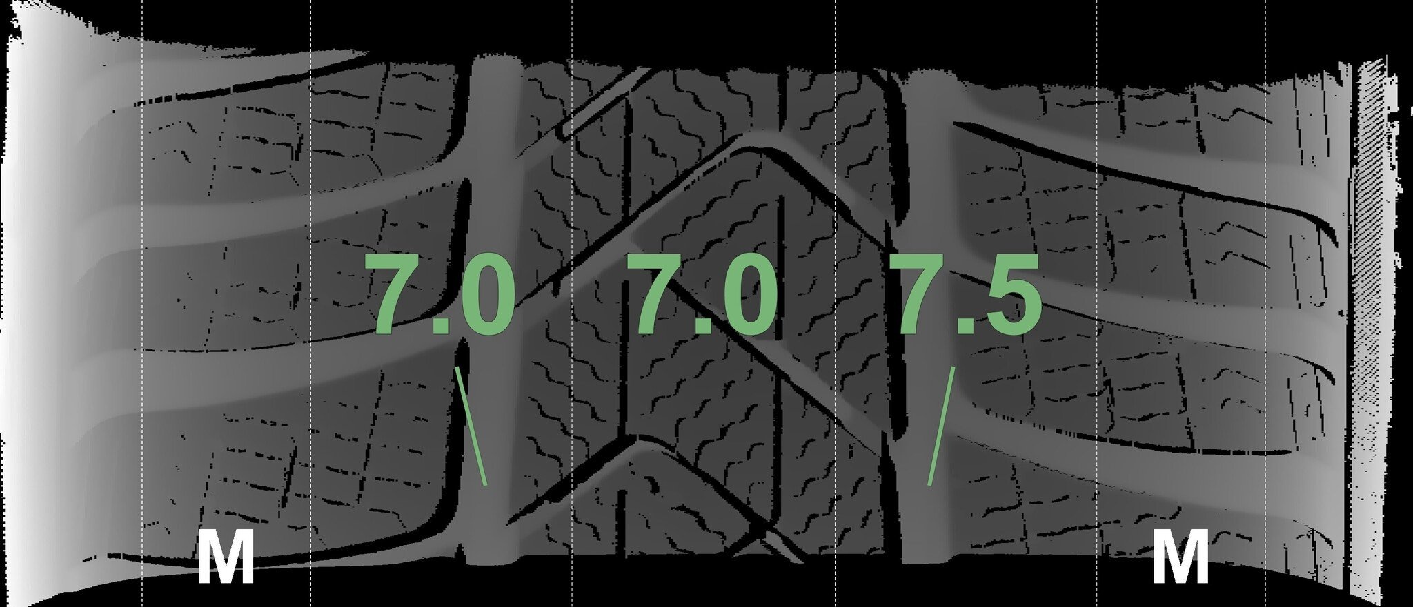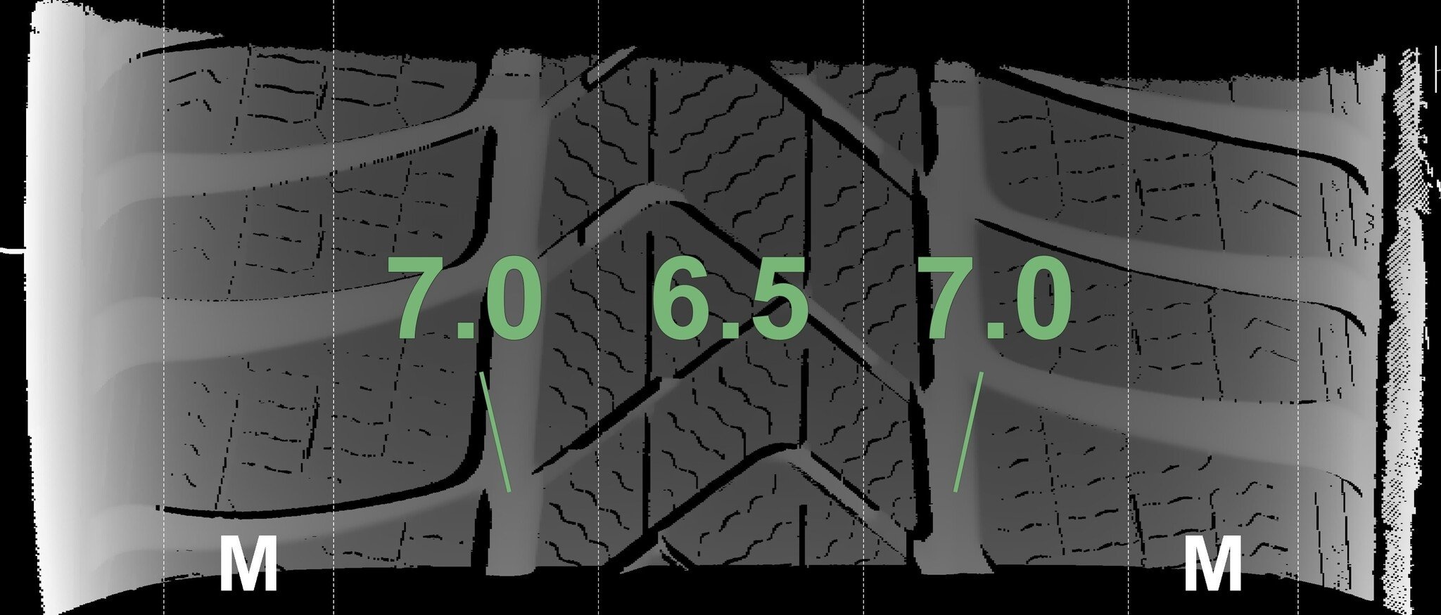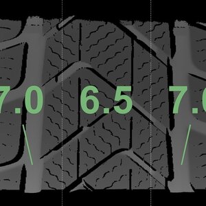 Die gemessenen Profiltiefen und die Details der Felgen sind oben dargestellt.