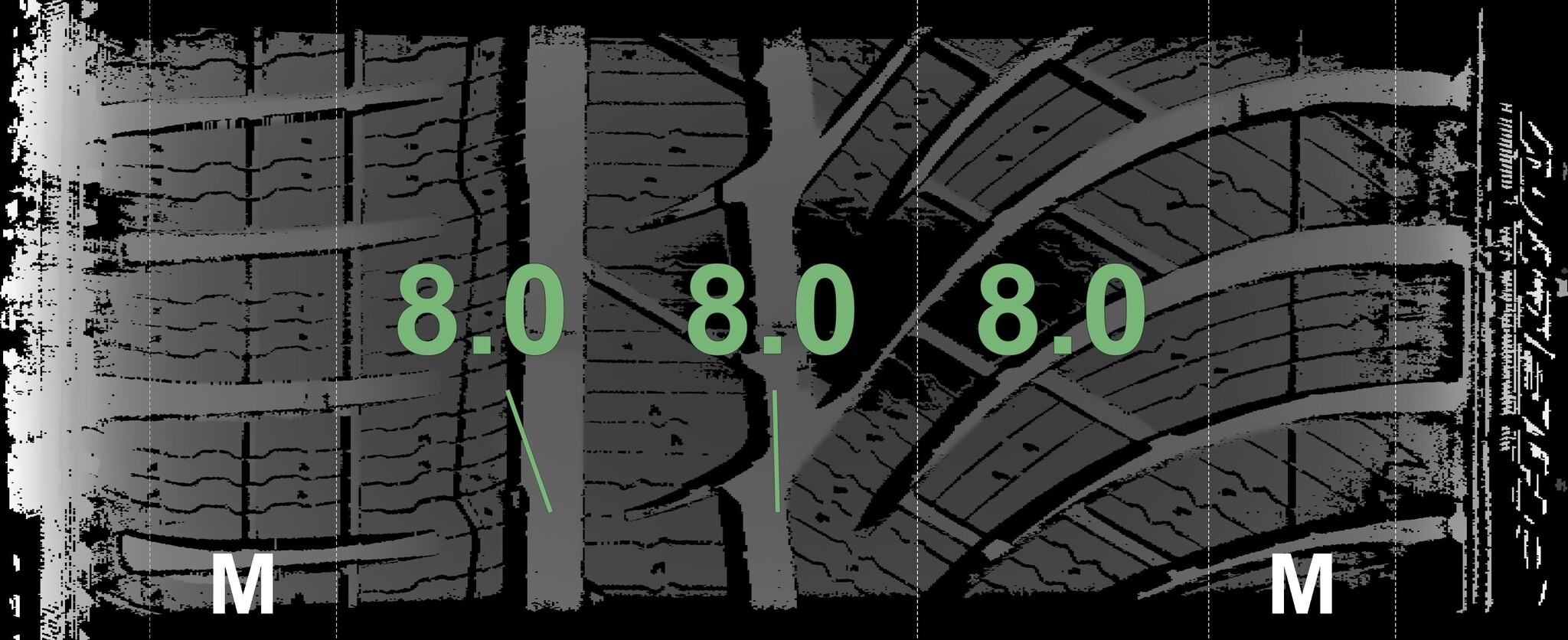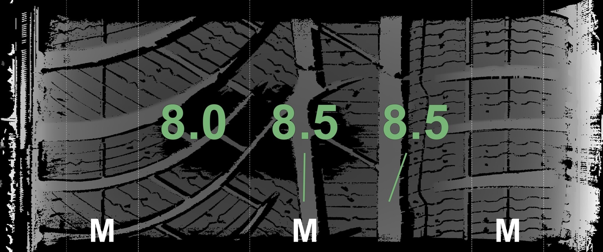 Zustand | Profiltiefe | DOT | Hinterachse Rechts | Neu | 8,0 mm | 4024 |