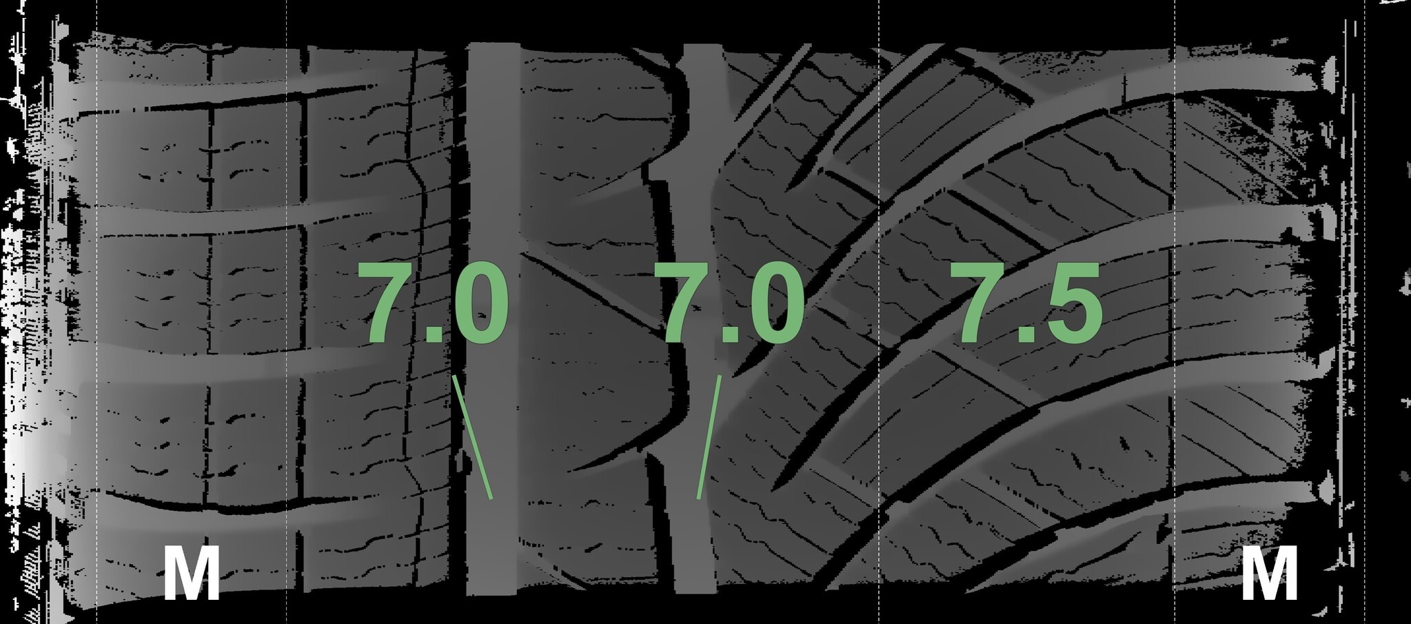 Die gemessenen Profiltiefen und Details zu den Felgen sind oben abgebildet.