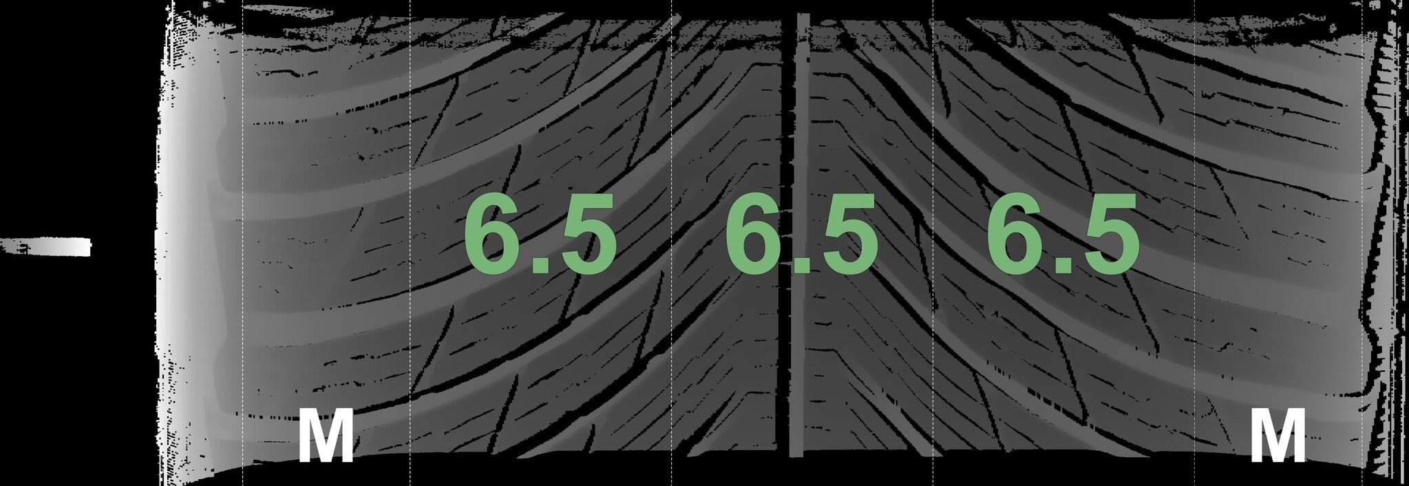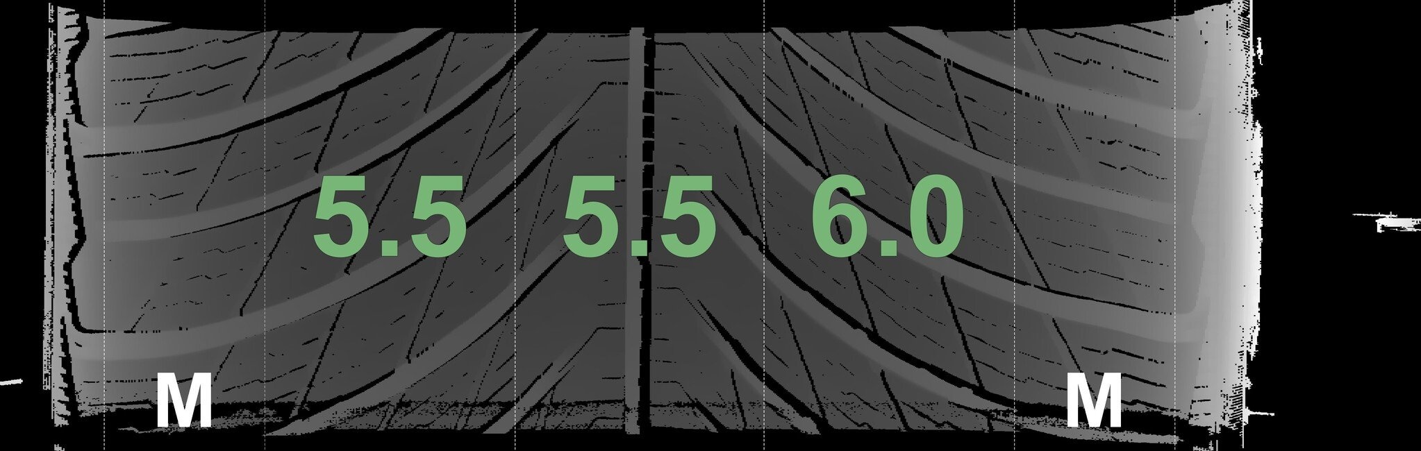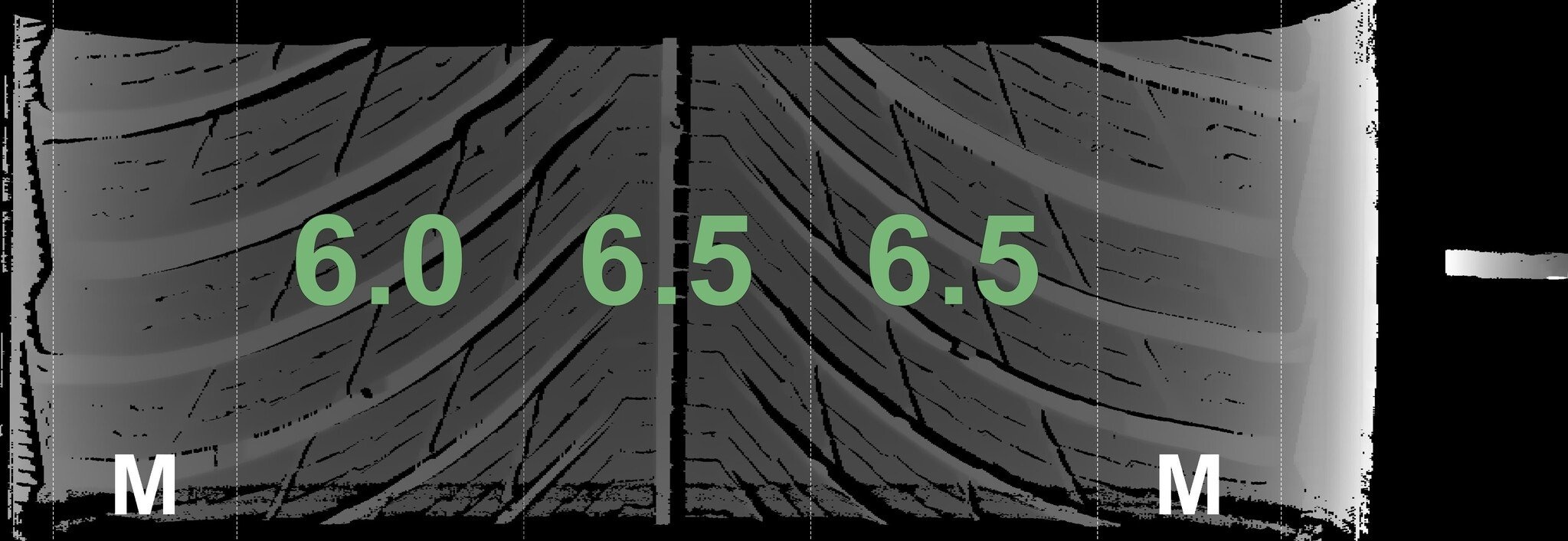 Die gemessenen Profiltiefen und die Details der Felgen sind oben angegeben.