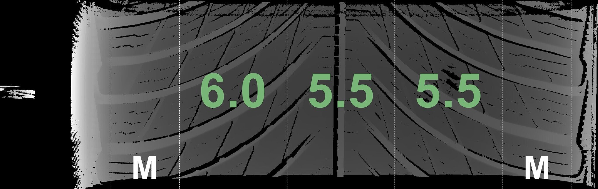 | Zustand | Profiltiefe | DOT | Hinterachse Rechts | Gebraucht | 5.7 mm | 2619 |