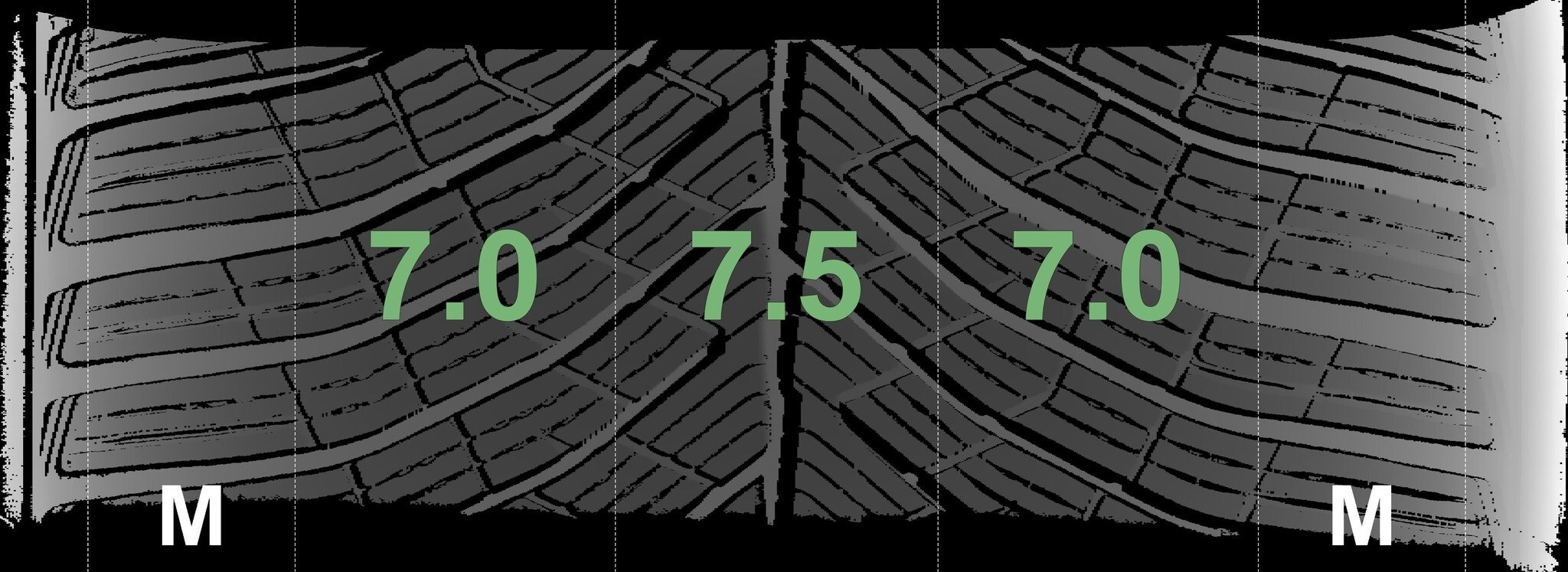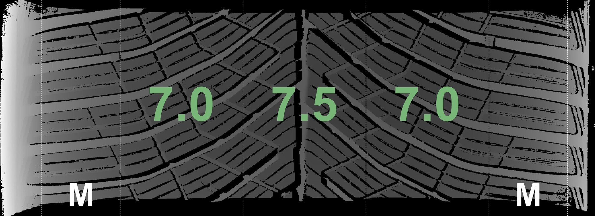 Die gemessenen Profiltiefen und die Details der Felgen sind oben angegeben.