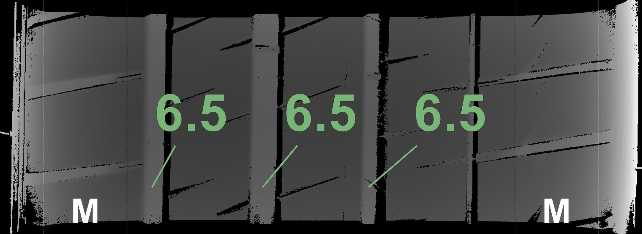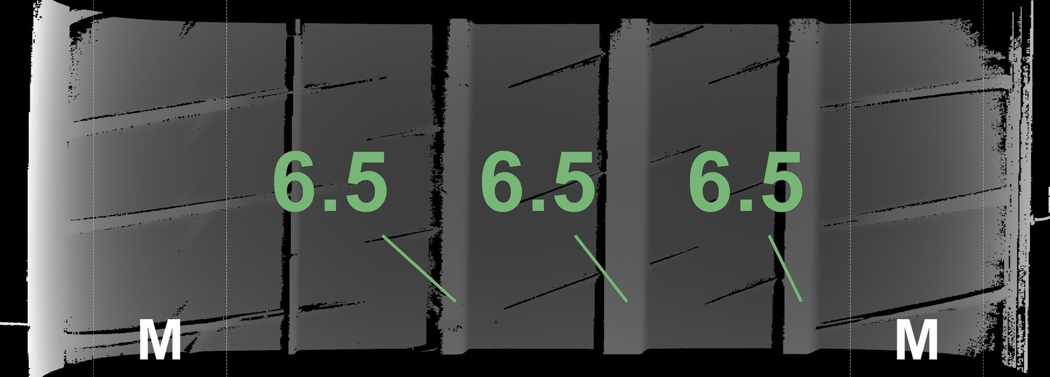 | Zustand | Profiltiefe | DOT | Hinterachse Links | Neu | 6.5 mm | 1123 |