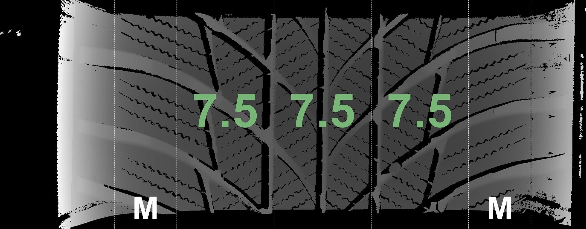 | Zustand | Profiltiefe | DOT | Hinterachse Links | Gebraucht | 7,5 mm | 4019 |