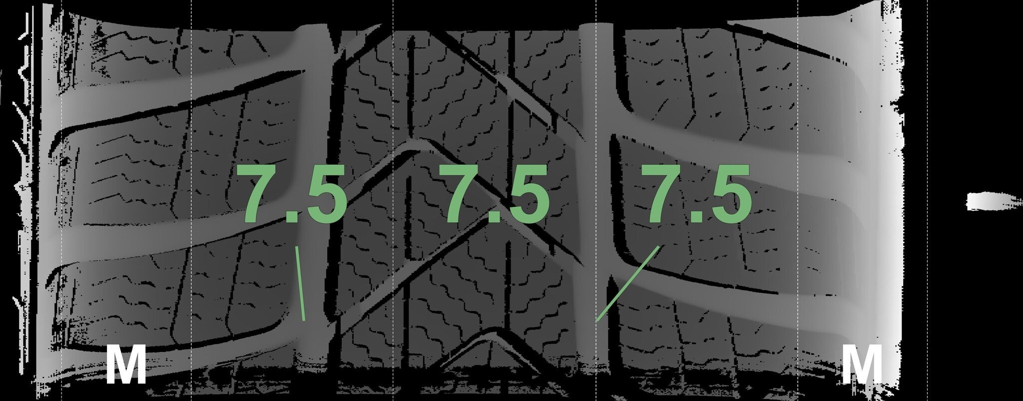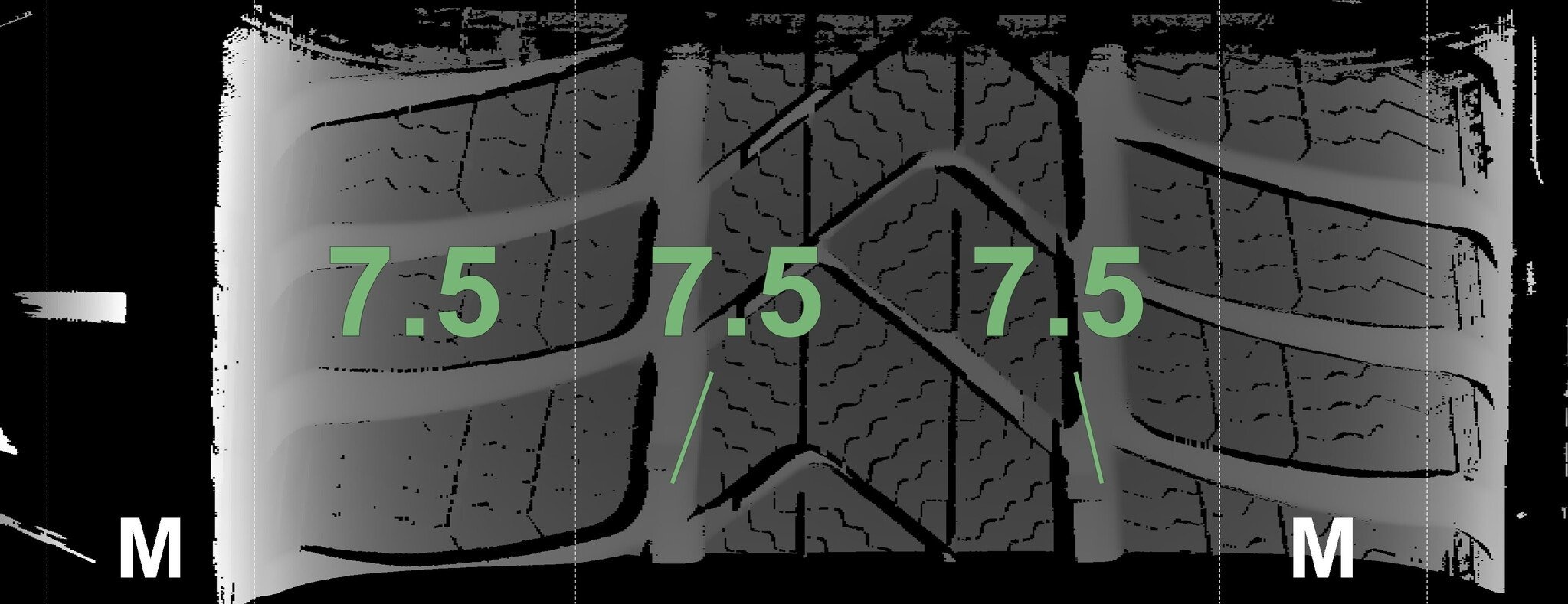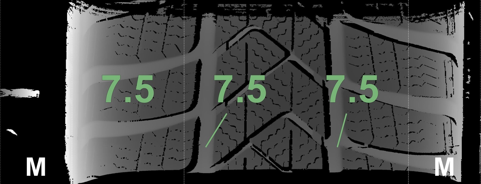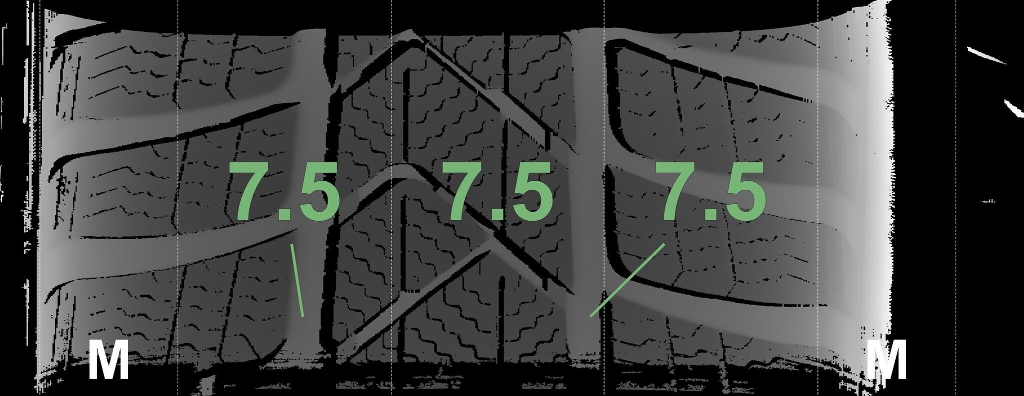 | Zustand | Profiltiefe | DOT | Vorderachse Links | Neu | 7,5 mm | 3022 |