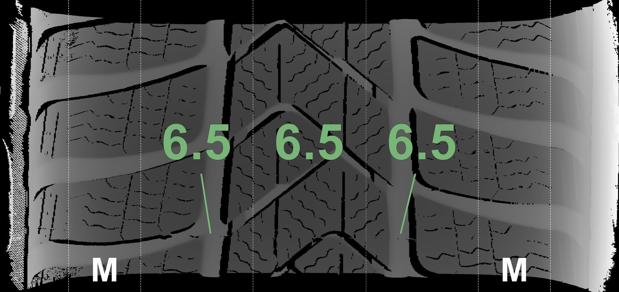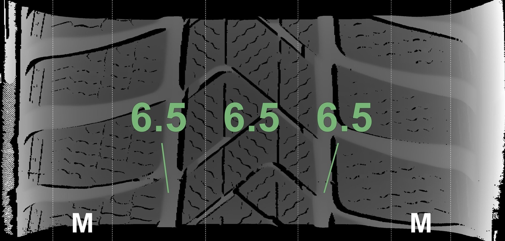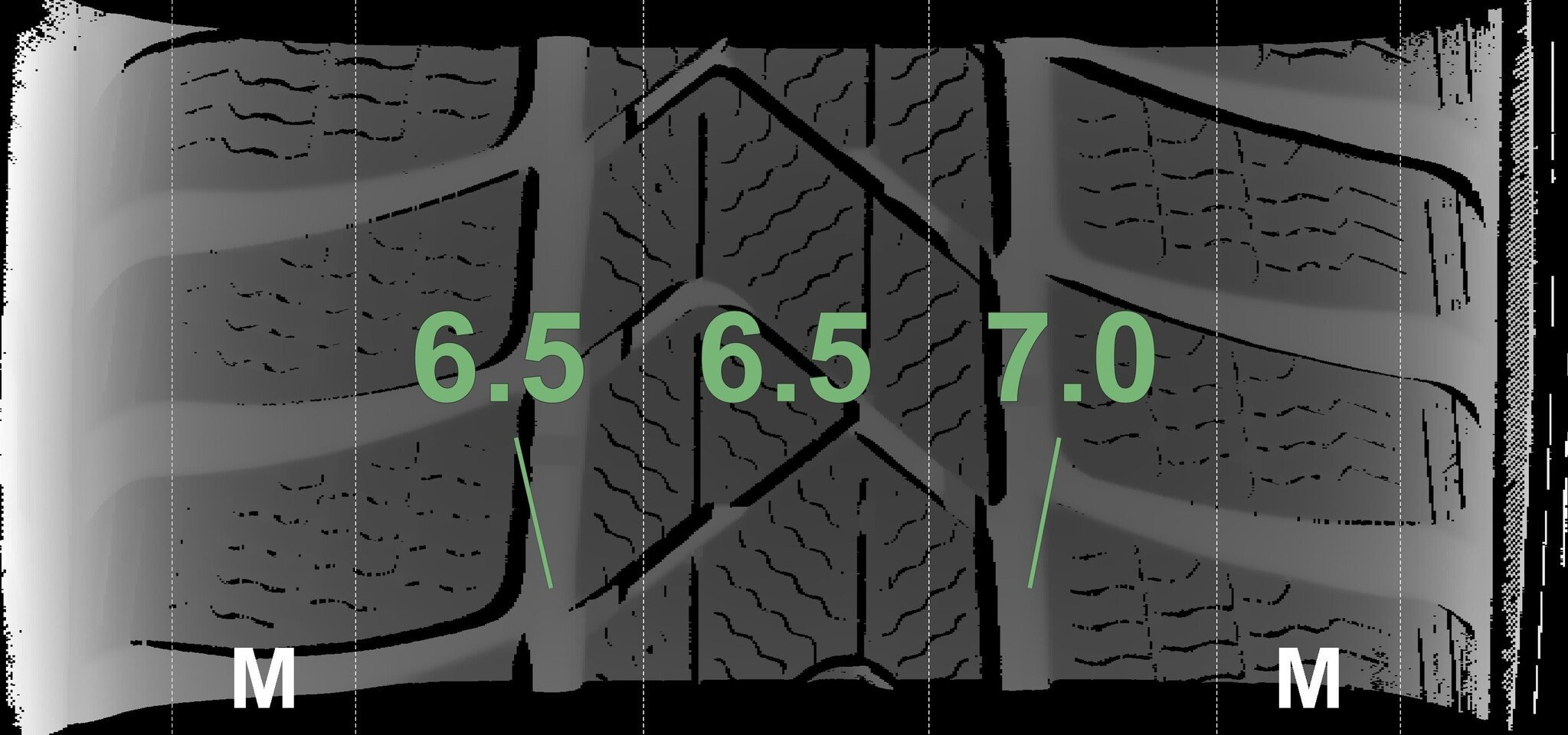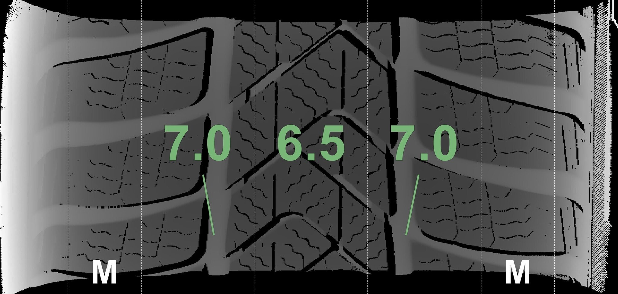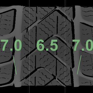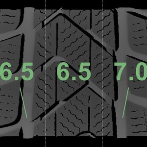 Die gemessenen Profiltiefen und die Details der Felgen sind oben dargestellt.