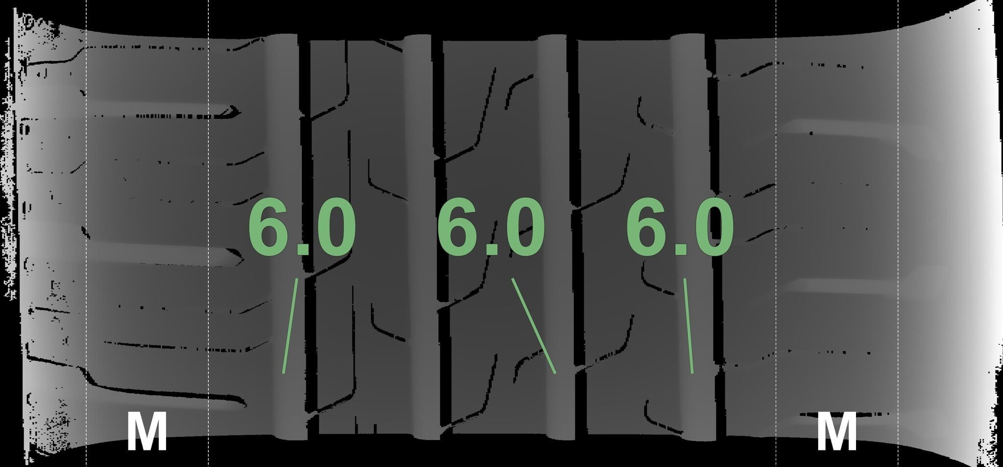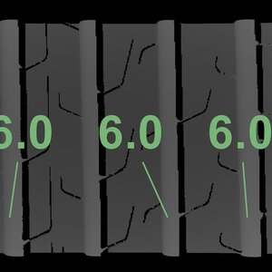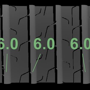| Zustand | Profiltiefe | DOT | Vorderachse Links | Demobolzen noch sichtbar | 6,0 mm | 2223 |