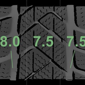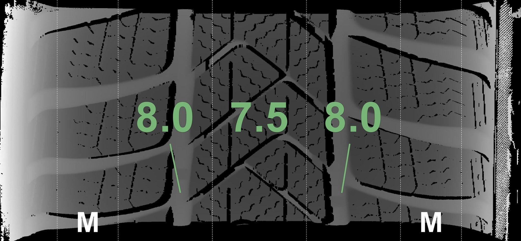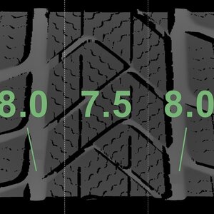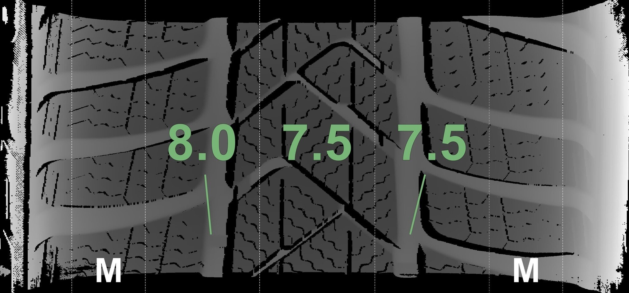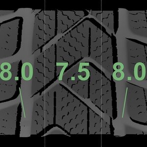 | Zustand | Profiltiefe | DOT | Vorderachse Links | Neu | 7.8 mm | 2222 |