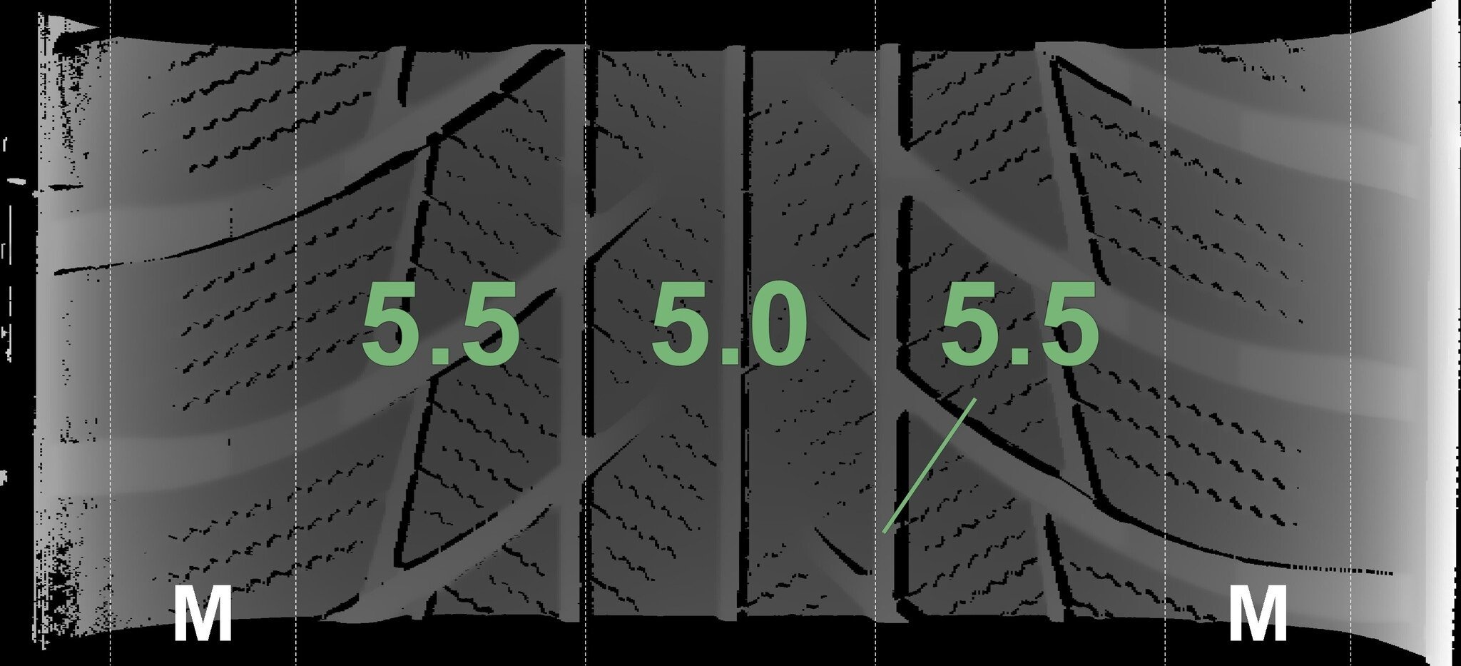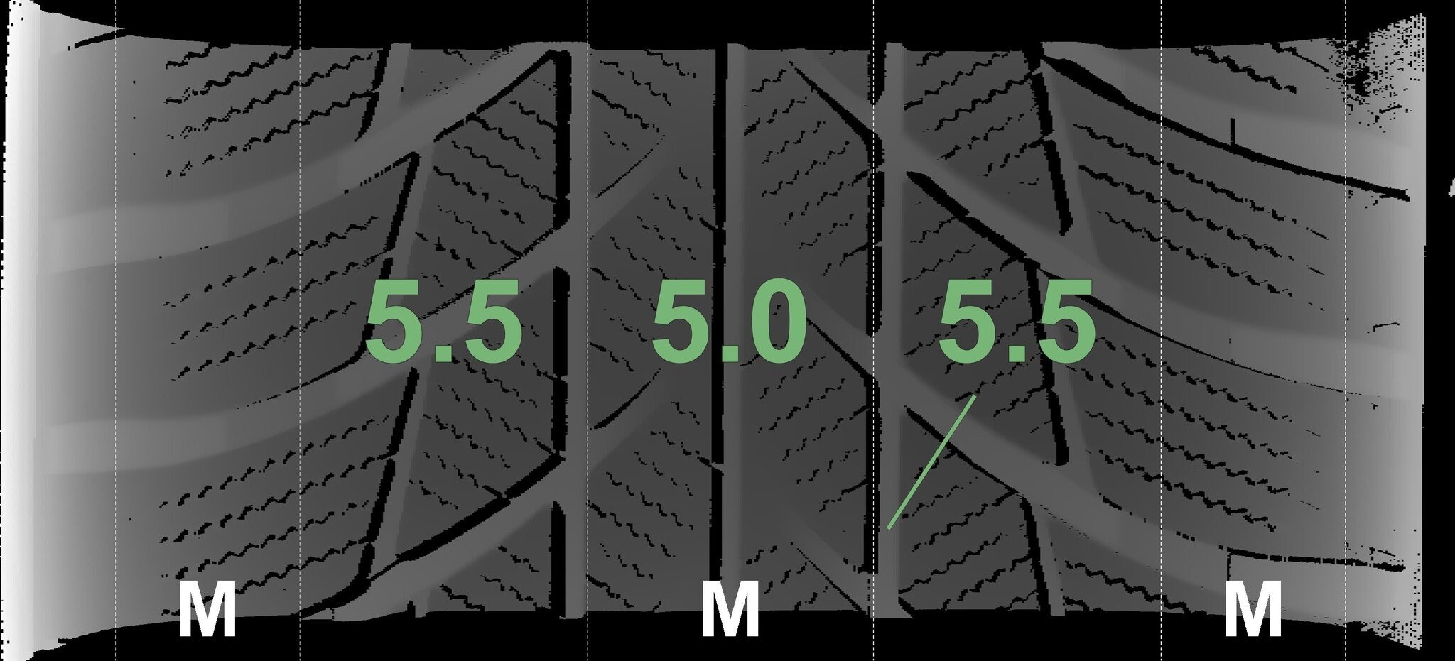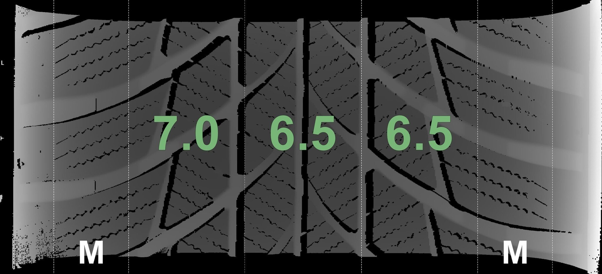 Die gemessenen Profiltiefen und Details zu den Felgen sind oben abgebildet.