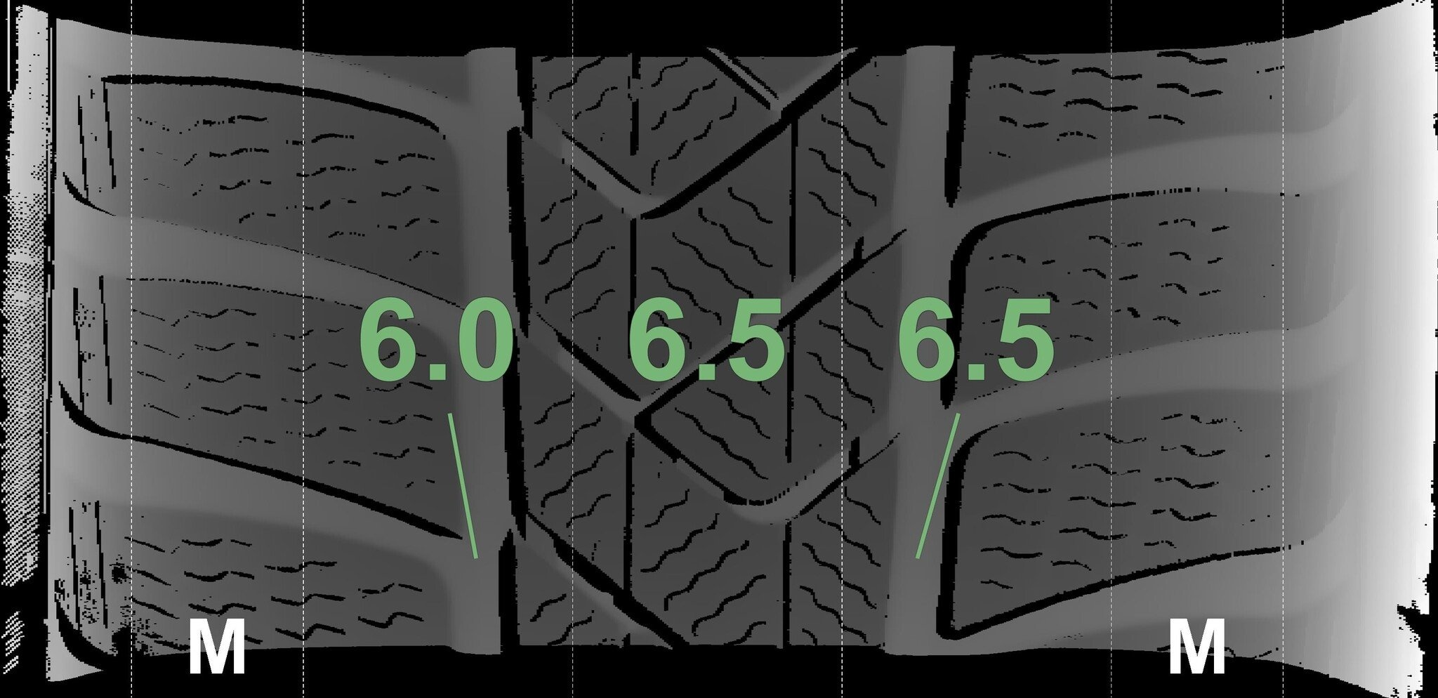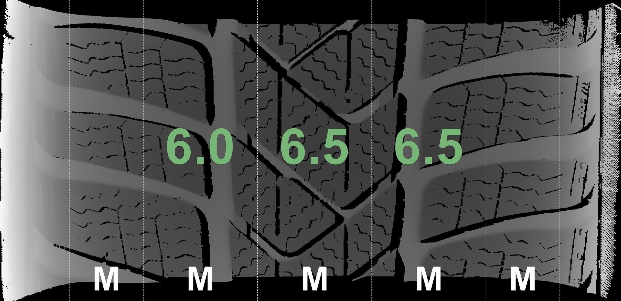 Die gemessenen Profiltiefen und Details zu den Felgen sind oben abgebildet.