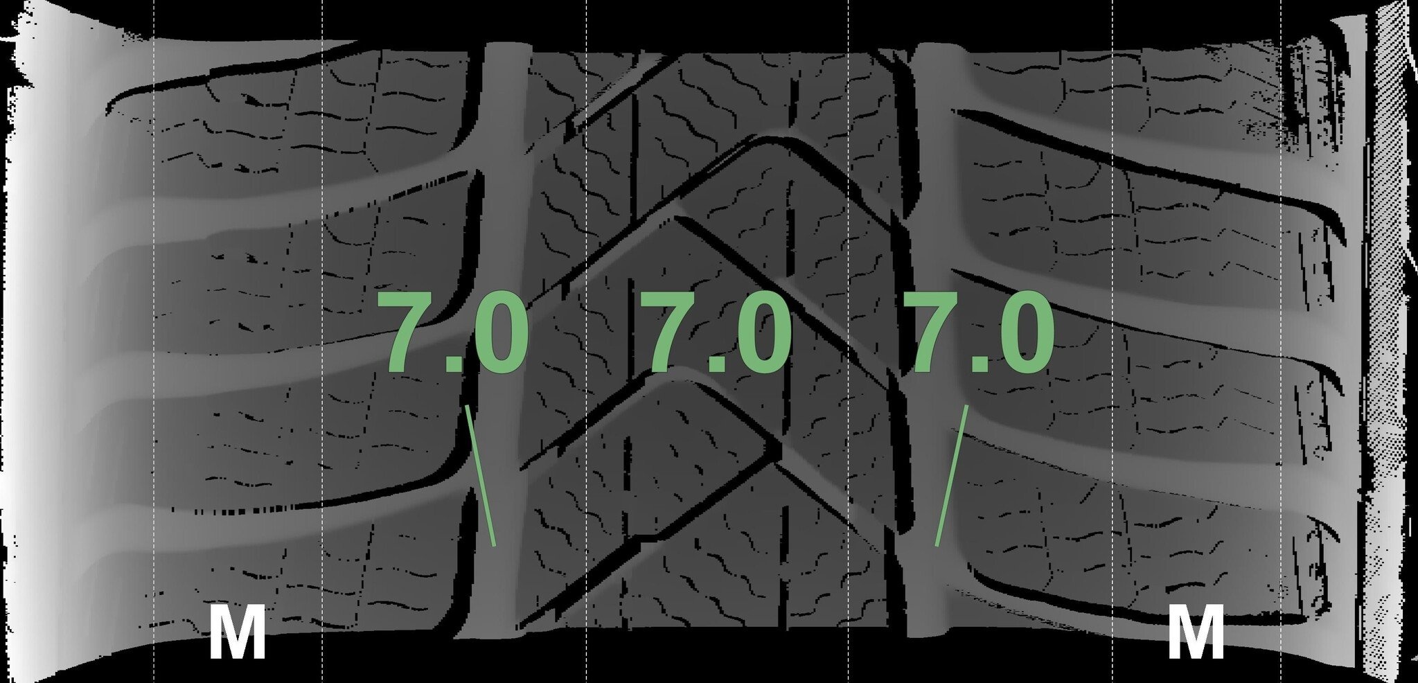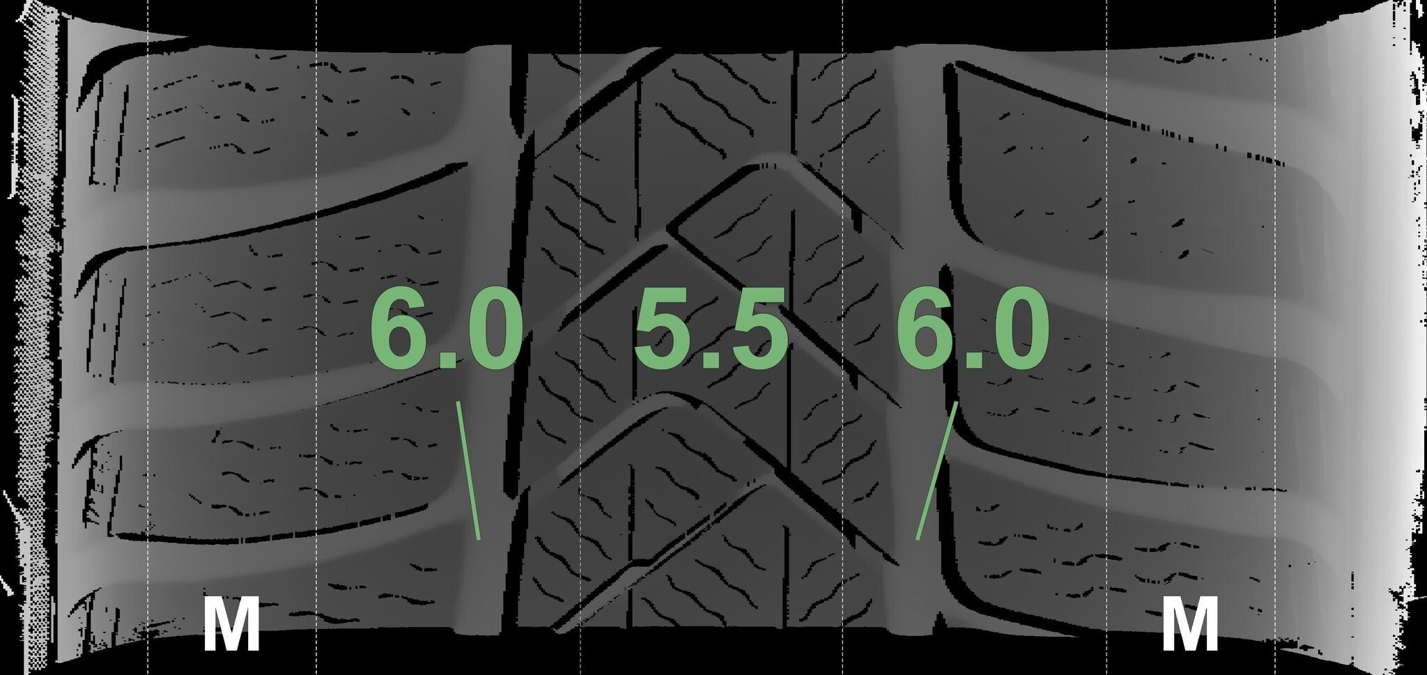 Die gemessenen Profiltiefen und Details zu den Felgen sind oben abgebildet.
