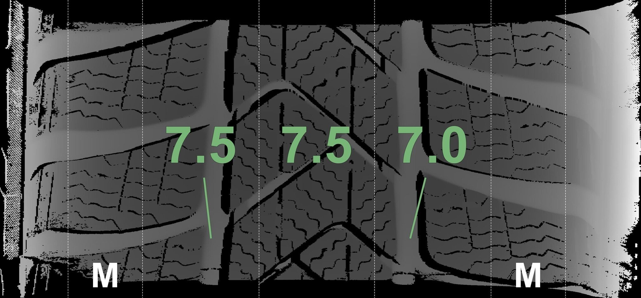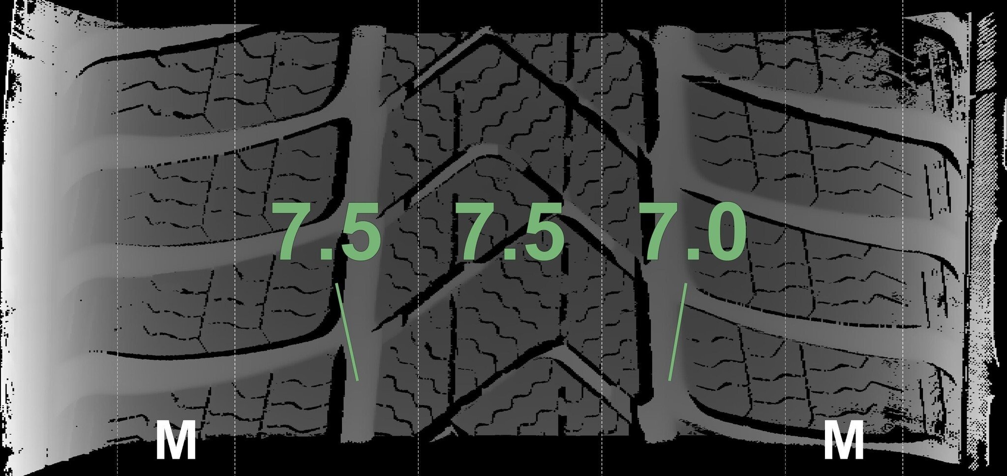 Die gemessenen Profiltiefen und Details zu den Felgen sind oben abgebildet.