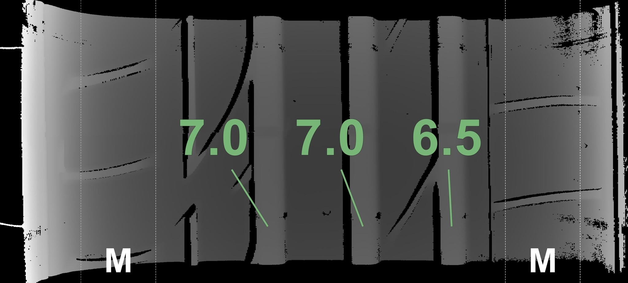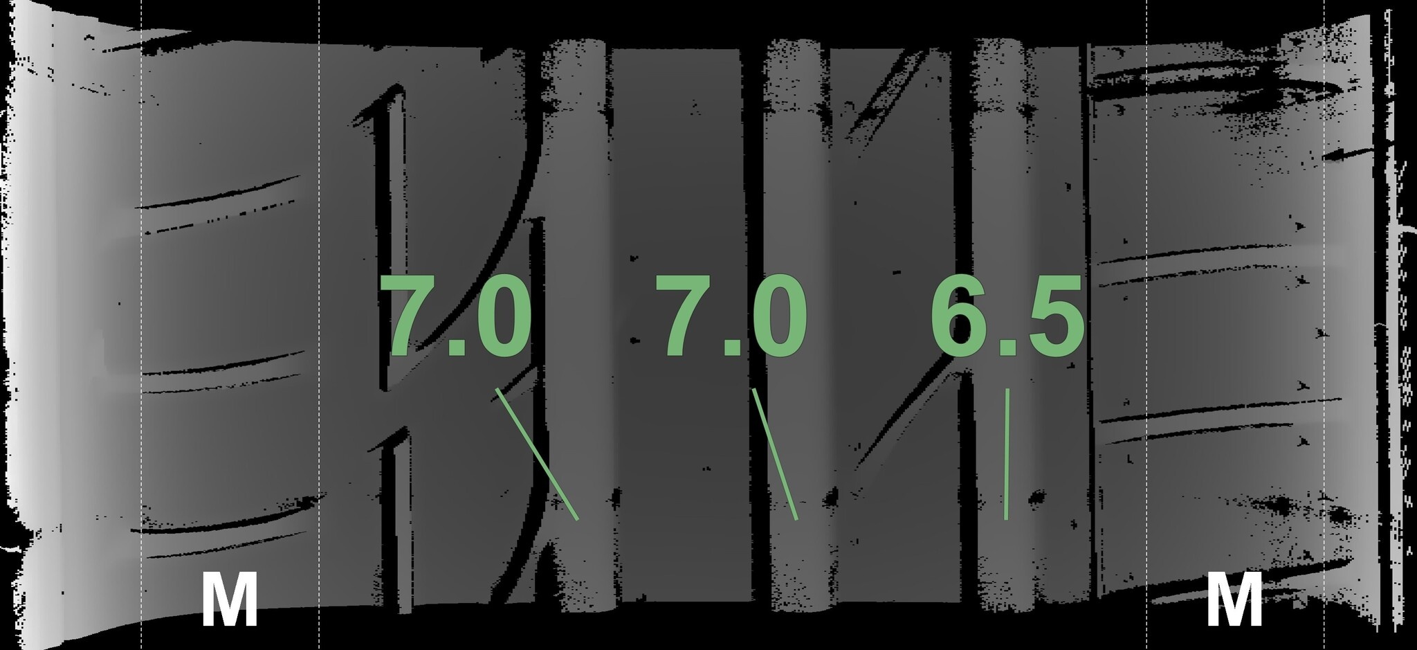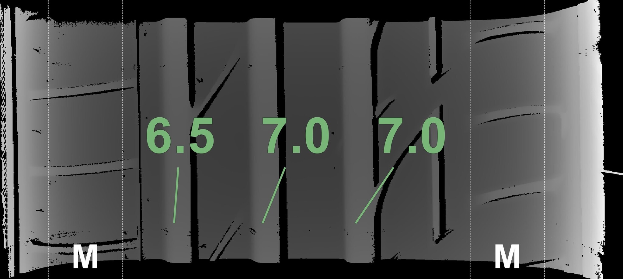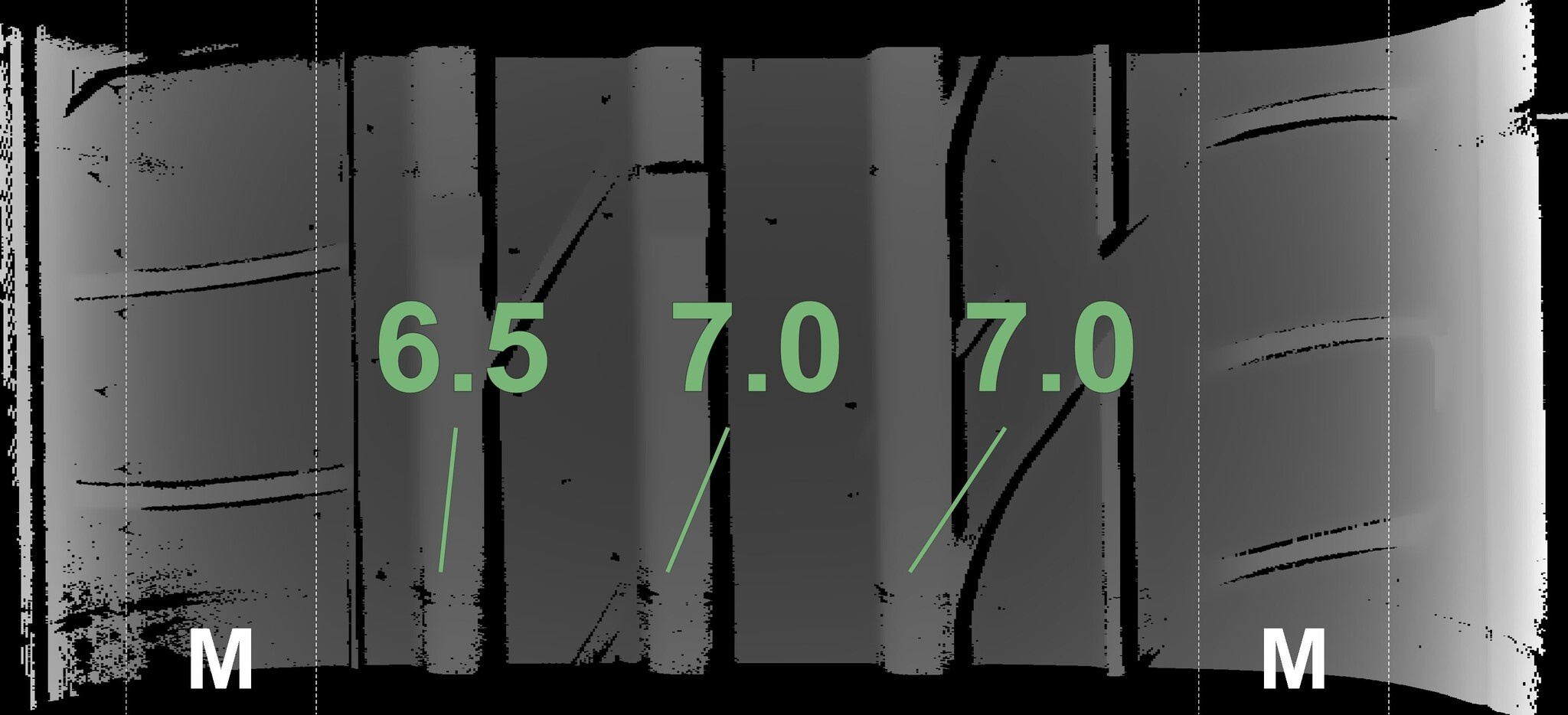 Die gemessenen Profiltiefen und Details zu den Felgen sind oben abgebildet.