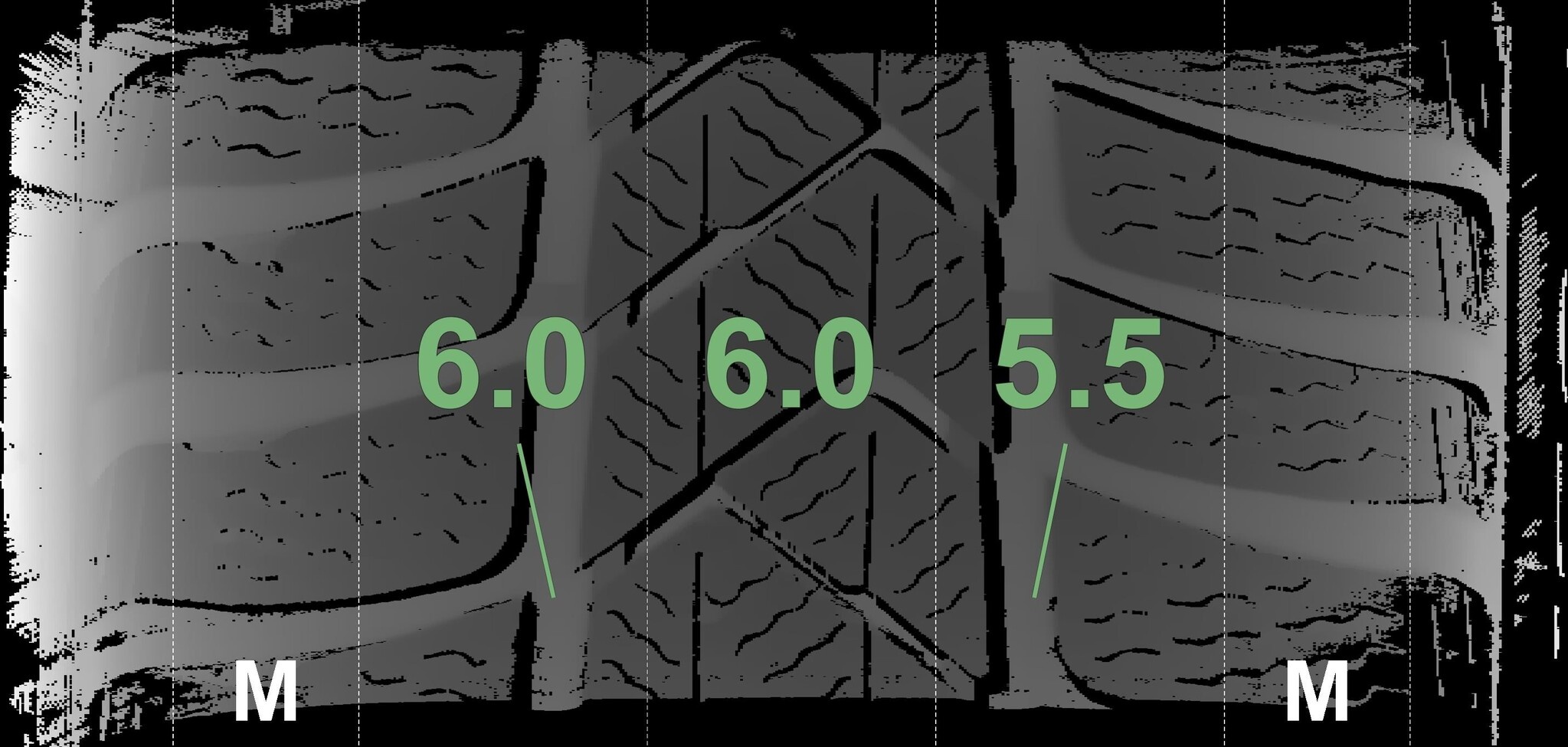 Die gemessenen Profiltiefen und Details zu den Felgen sind oben abgebildet.