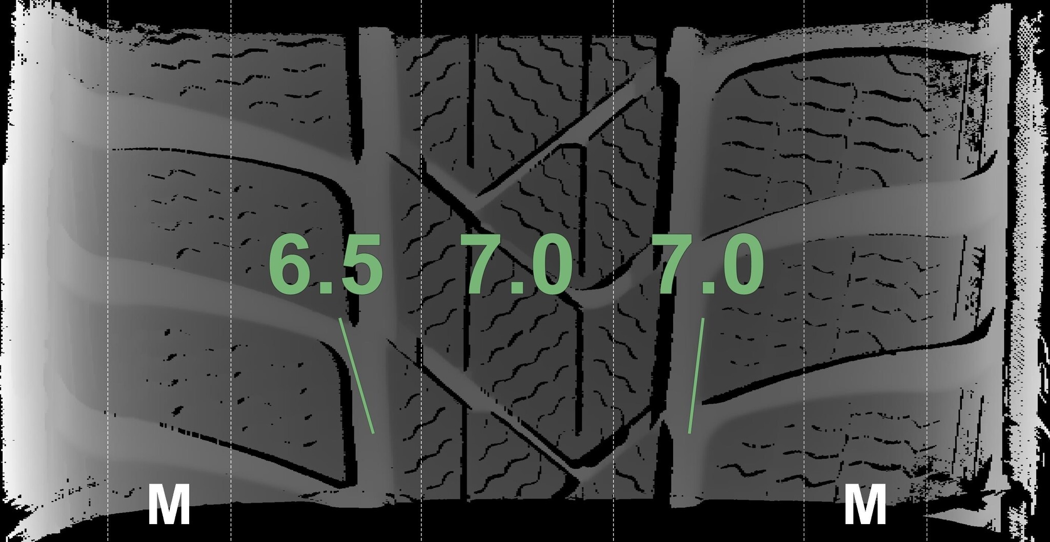 Die gemessenen Profiltiefen und Details zu den Felgen sind oben abgebildet.
