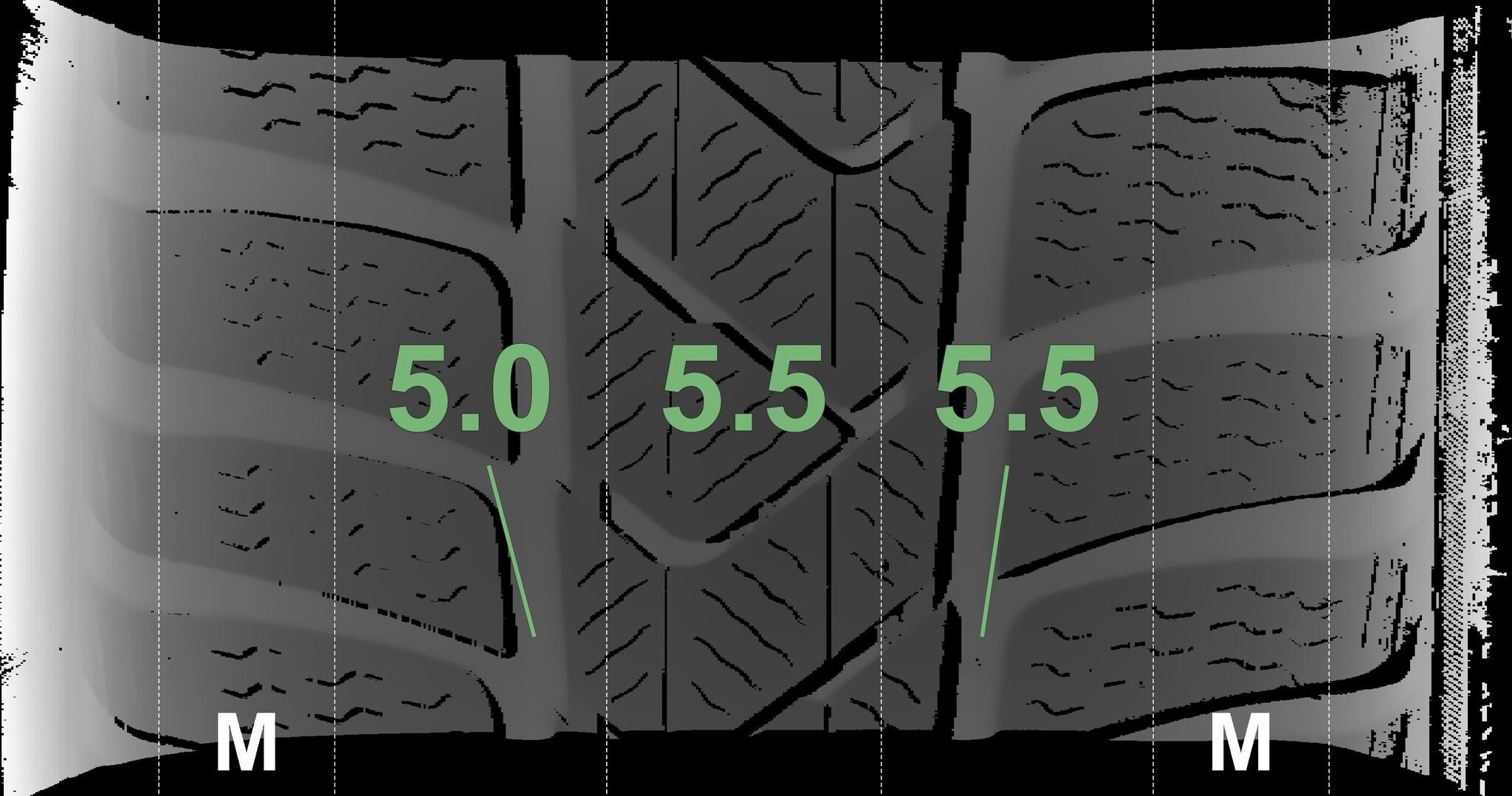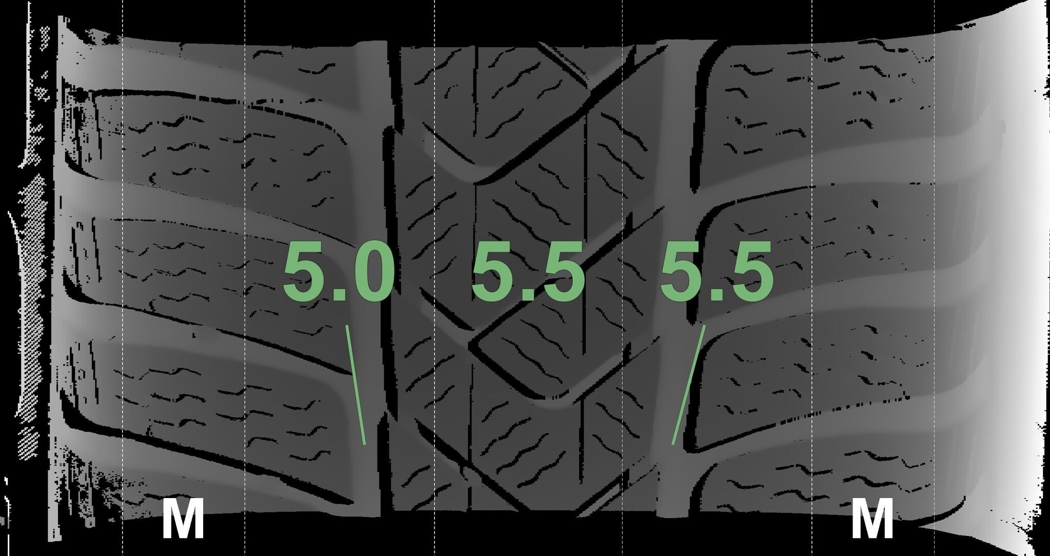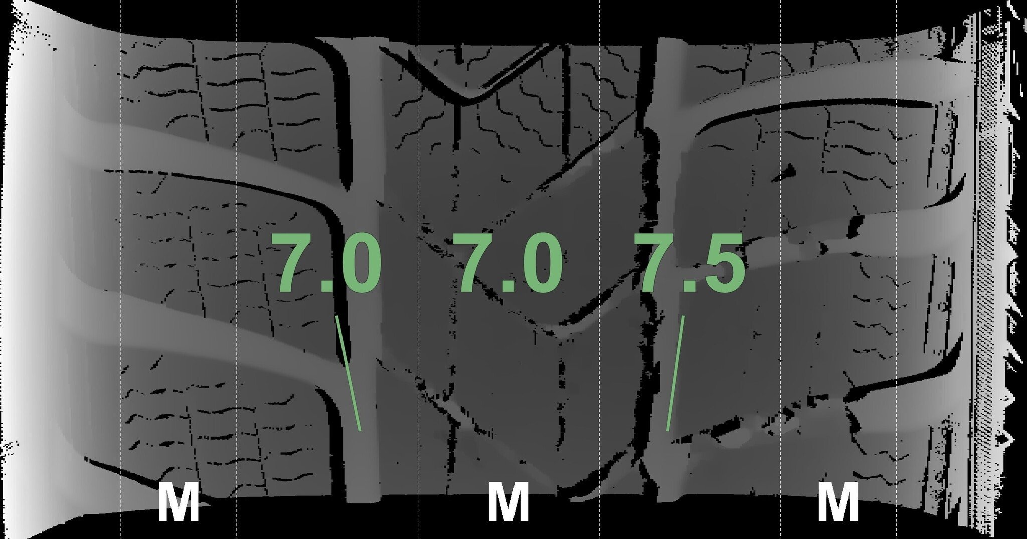 Die gemessenen Profiltiefen und Details zu den Felgen sind oben abgebildet.