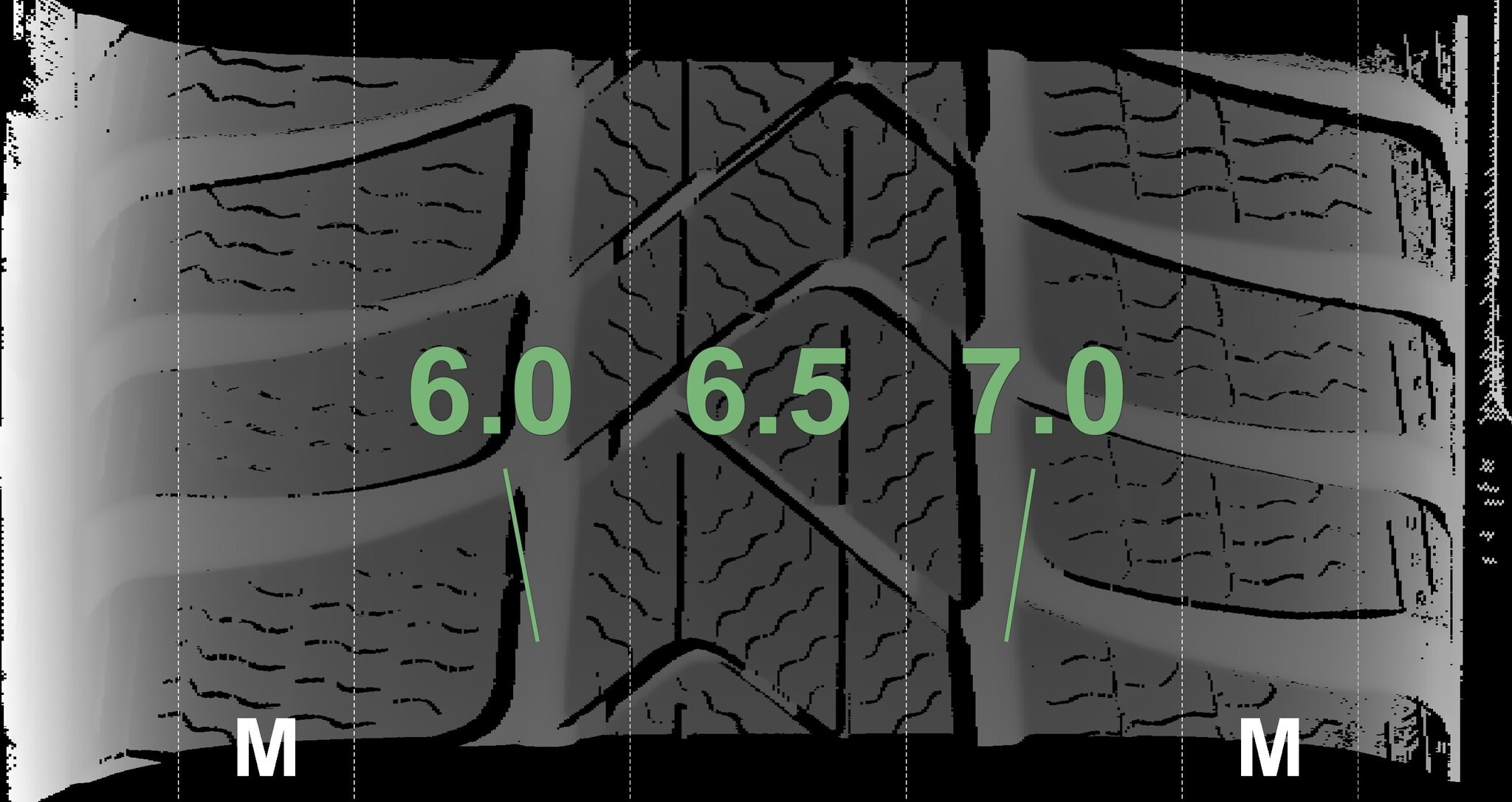 Die gemessenen Profiltiefen und Details zu den Felgen sind oben abgebildet.