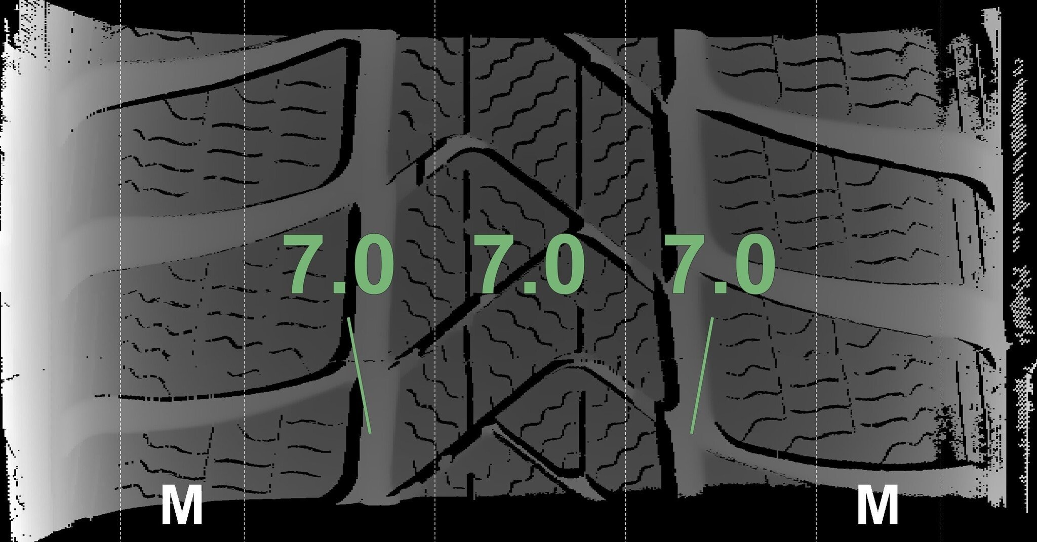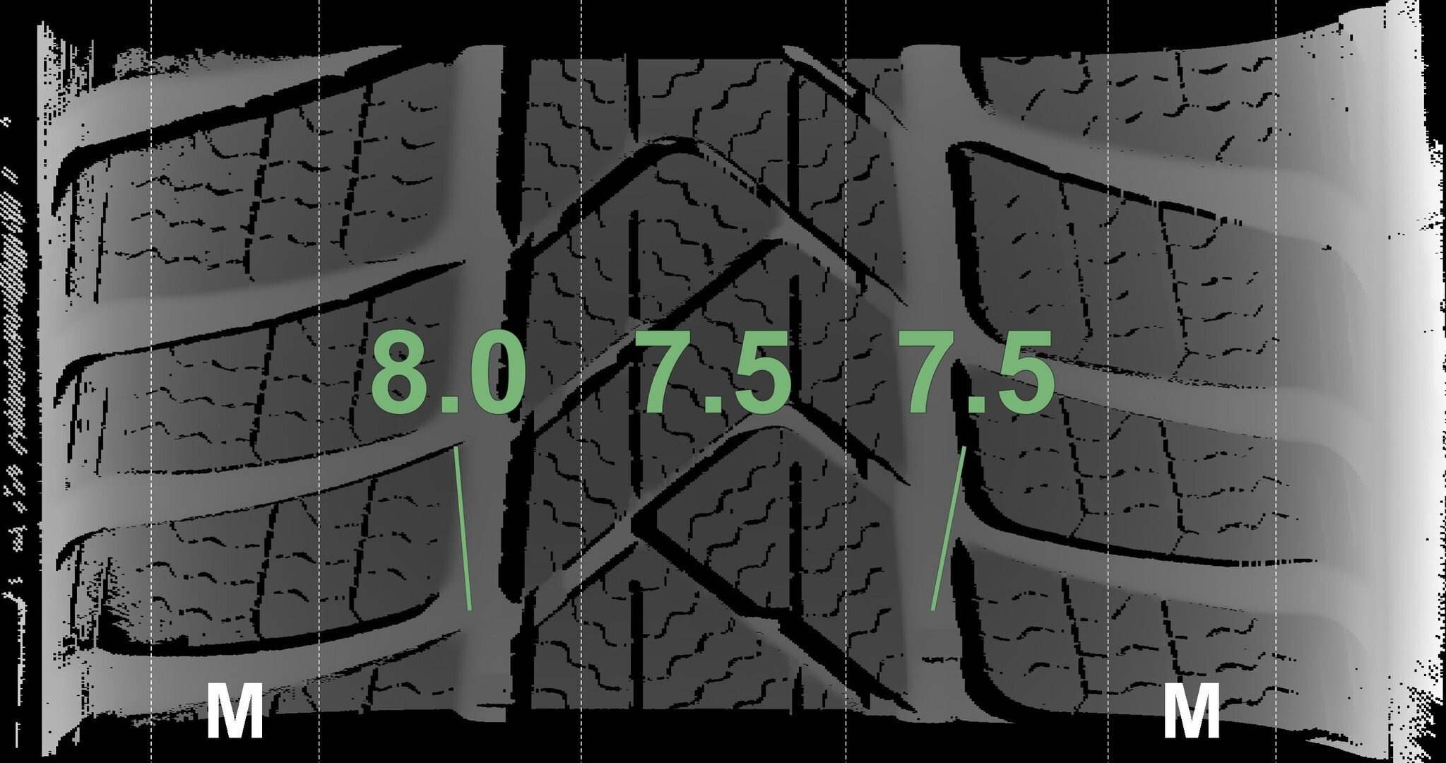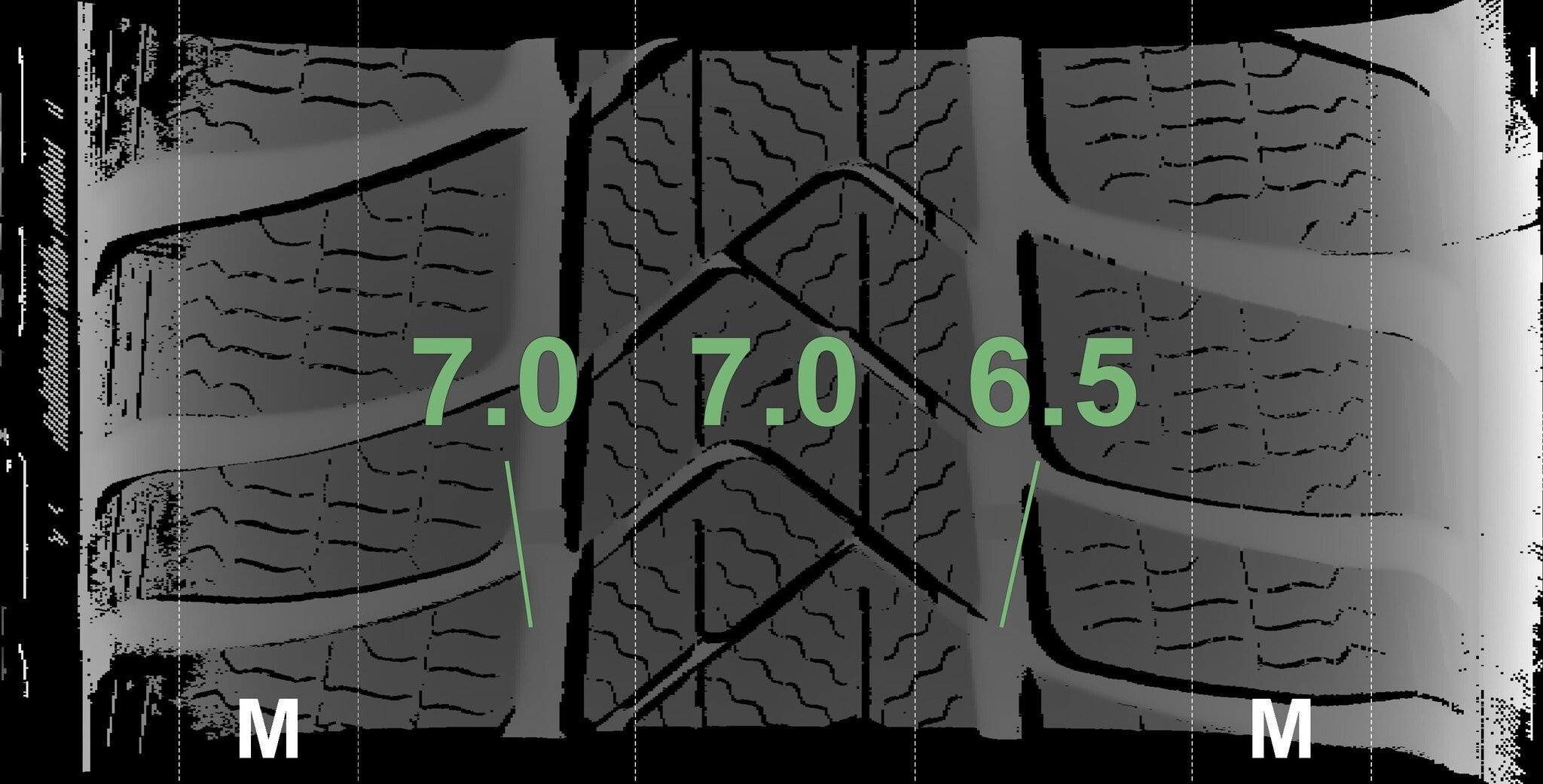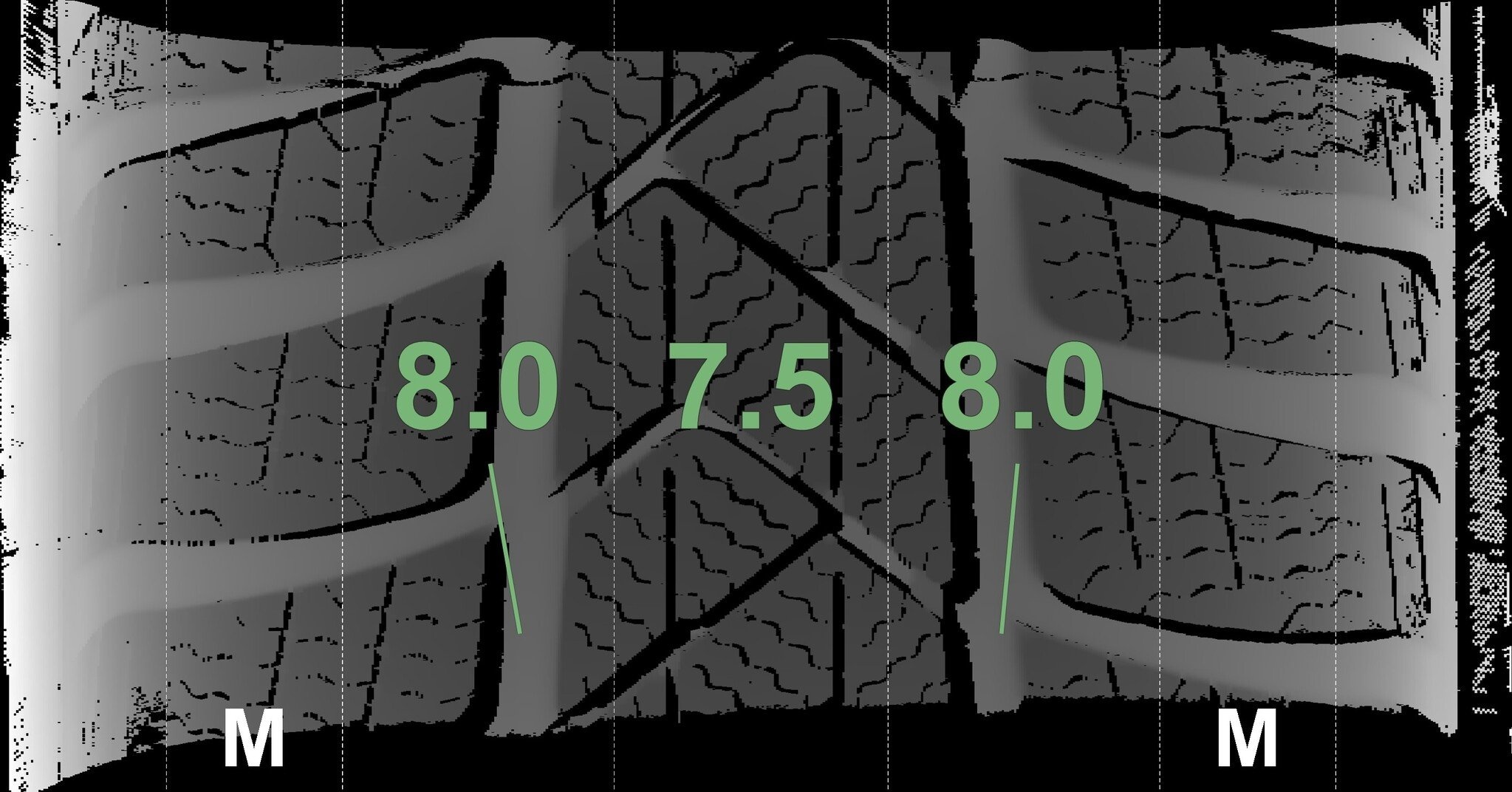 Die gemessenen Profiltiefen und Details zu den Felgen sind oben abgebildet.
