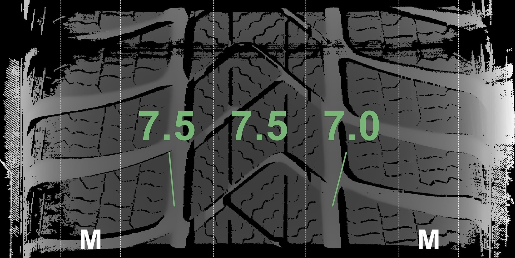 Die gemessenen Profiltiefen und Details zu den Felgen sind oben abgebildet.