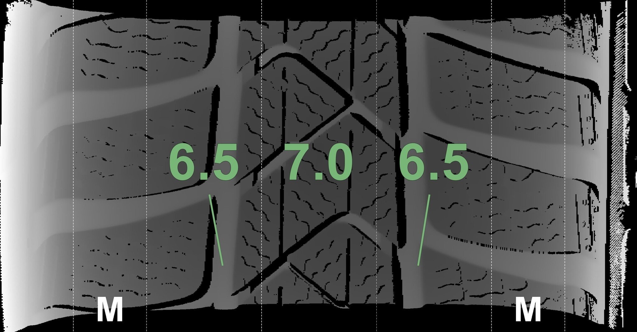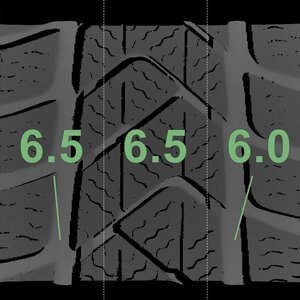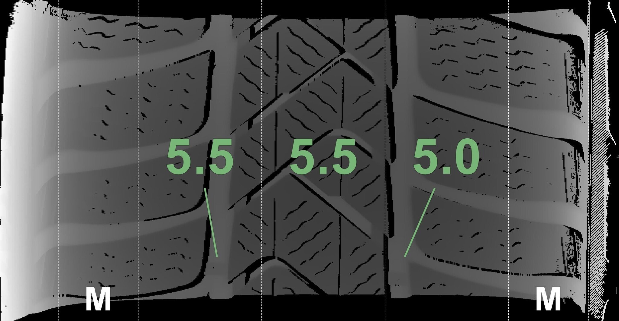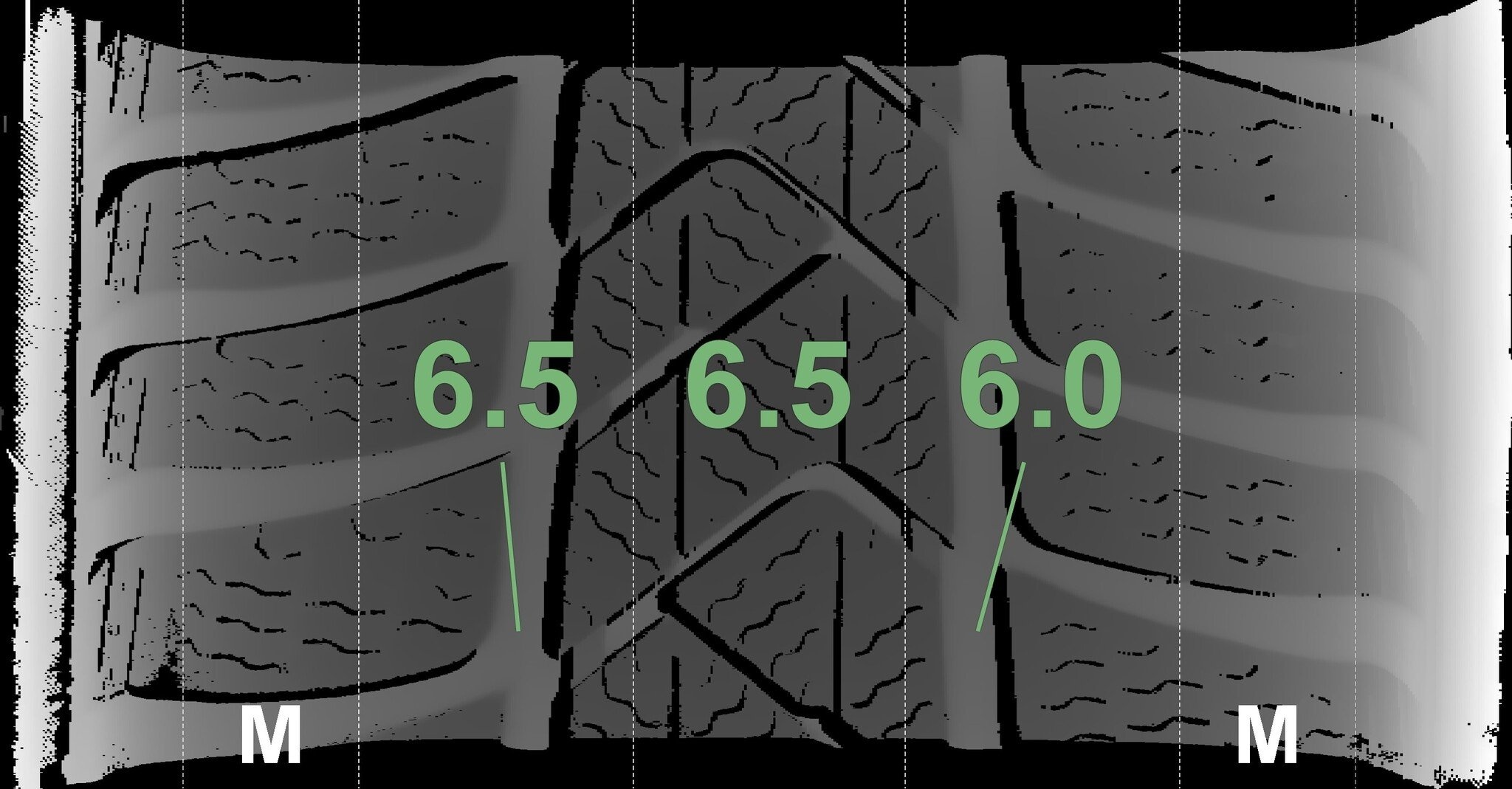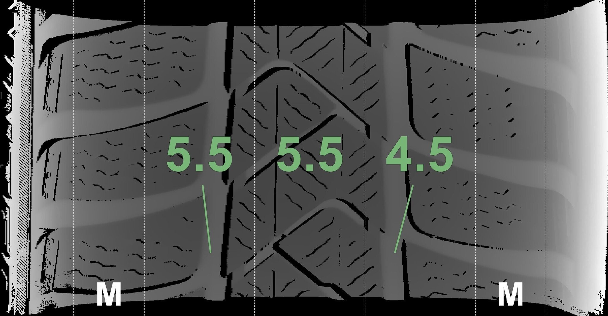 Die gemessenen Profiltiefen und die Details der Felgen sind oben angegeben.