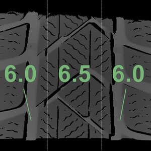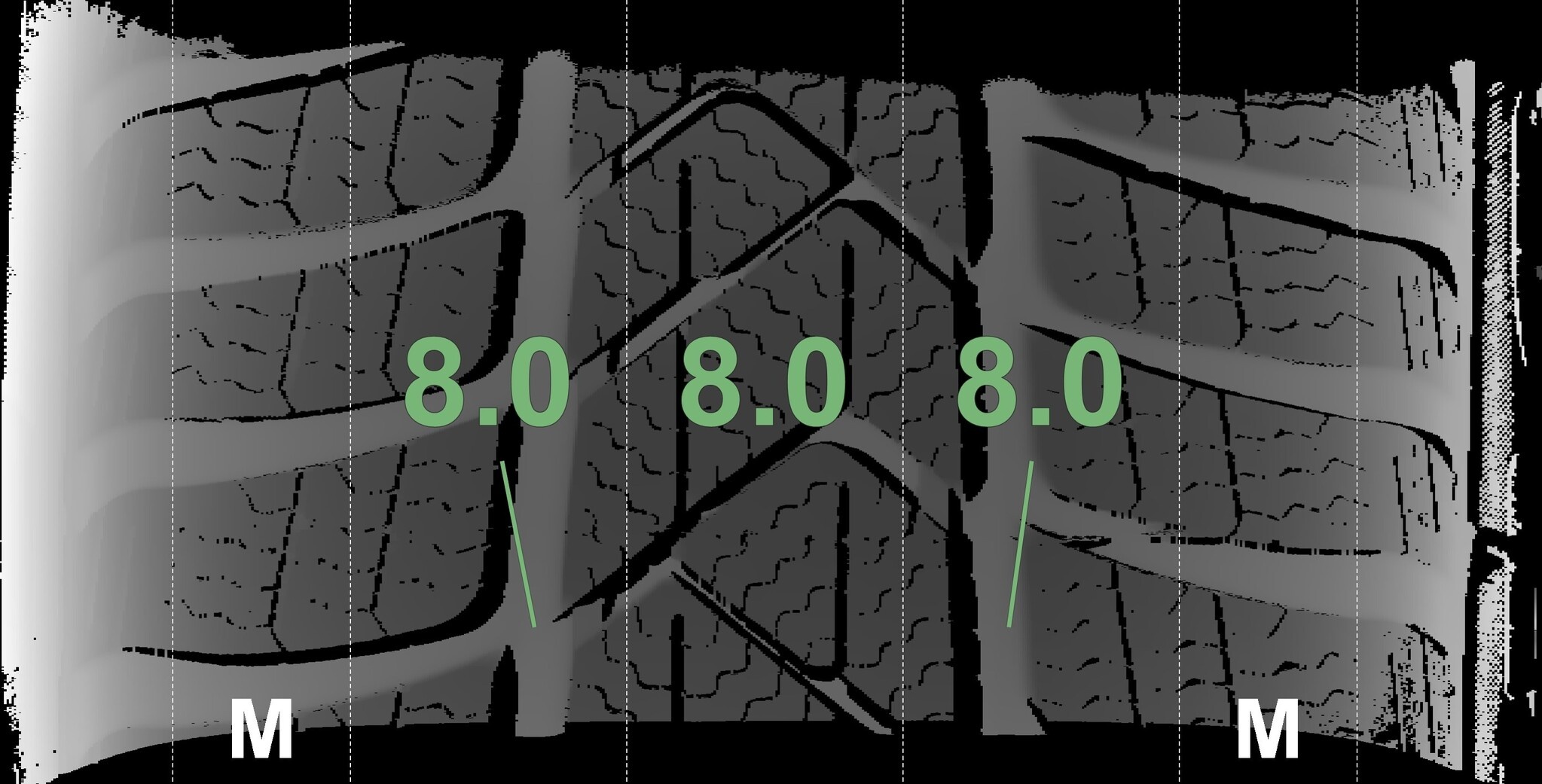 Die gemessenen Profiltiefen und die Details der Felgen sind oben dargestellt.