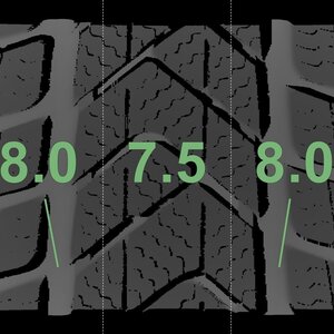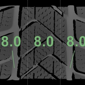 | Zustand | Profiltiefe | DOT | Vorderachse Rechts | Neu | 8,0 mm | 2322 |