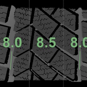 | Zustand | Profiltiefe | DOT | Vorderachse Rechts | Neu | 8,0 mm | 3325 |