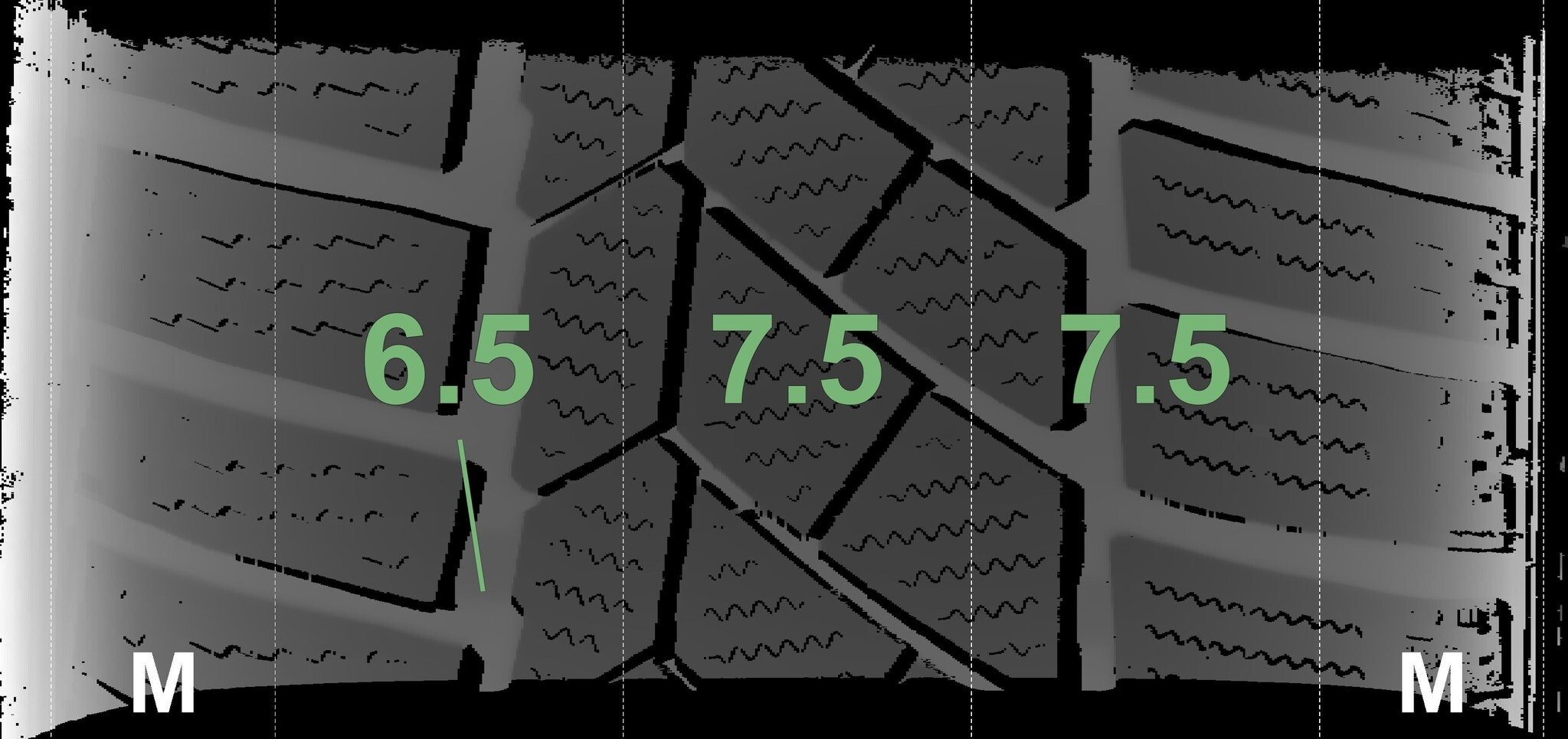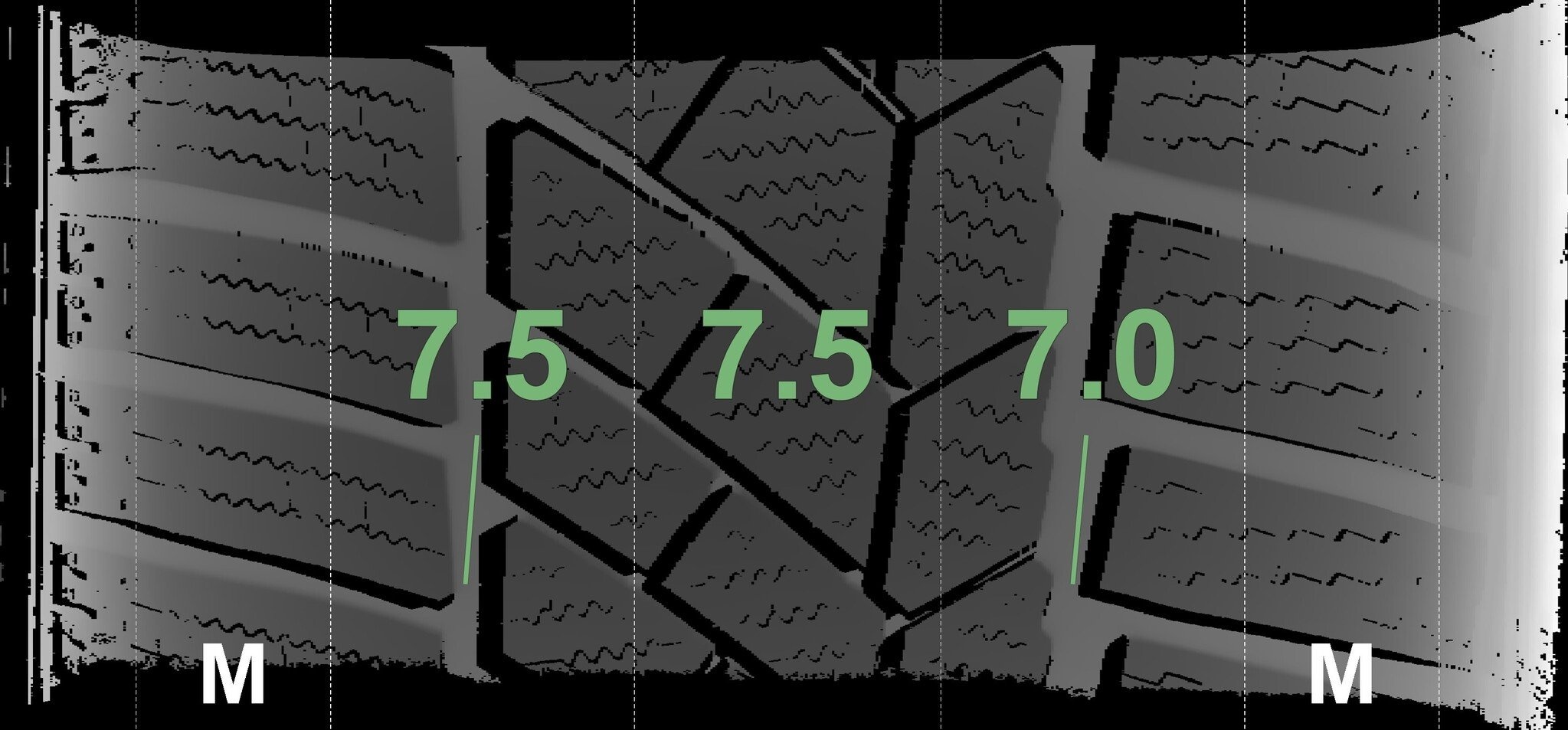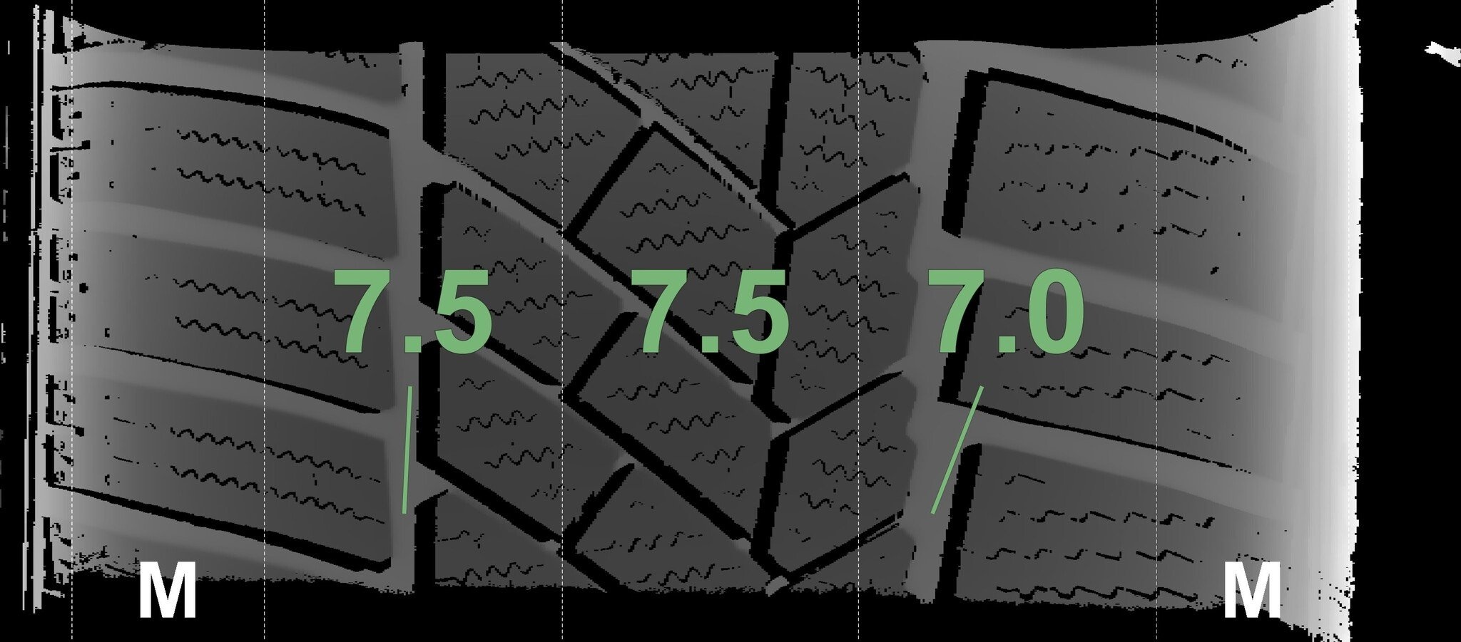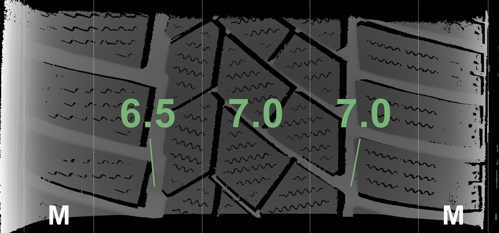 Die gemessenen Profiltiefen und Details zu den Felgen sind oben abgebildet.