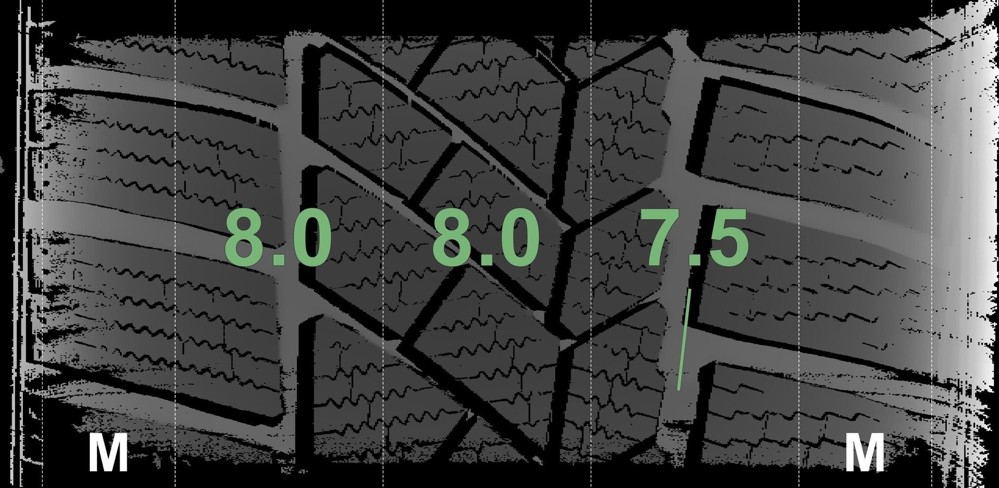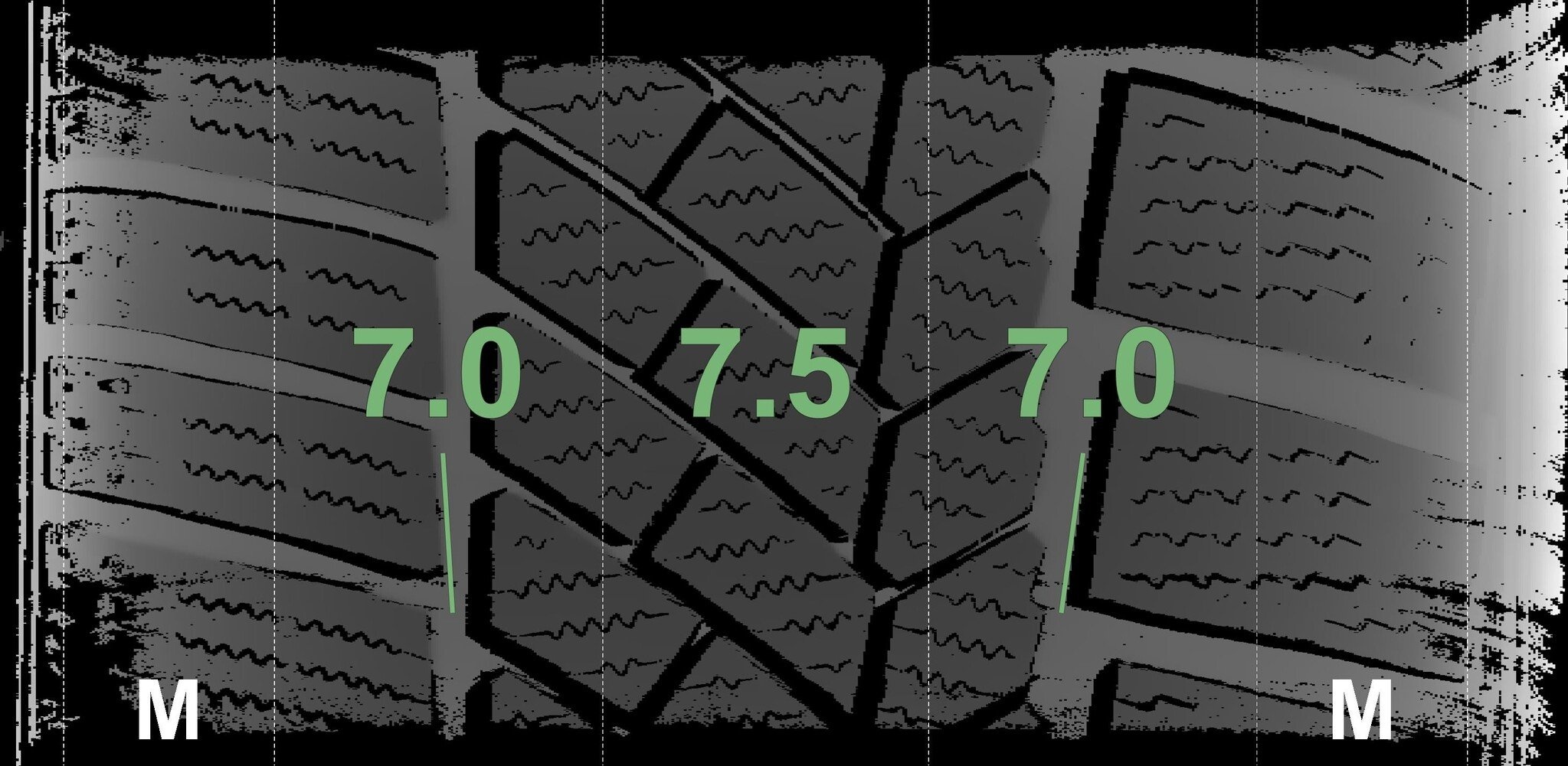 Die gemessenen Profiltiefen und Details zu den Felgen sind oben abgebildet.