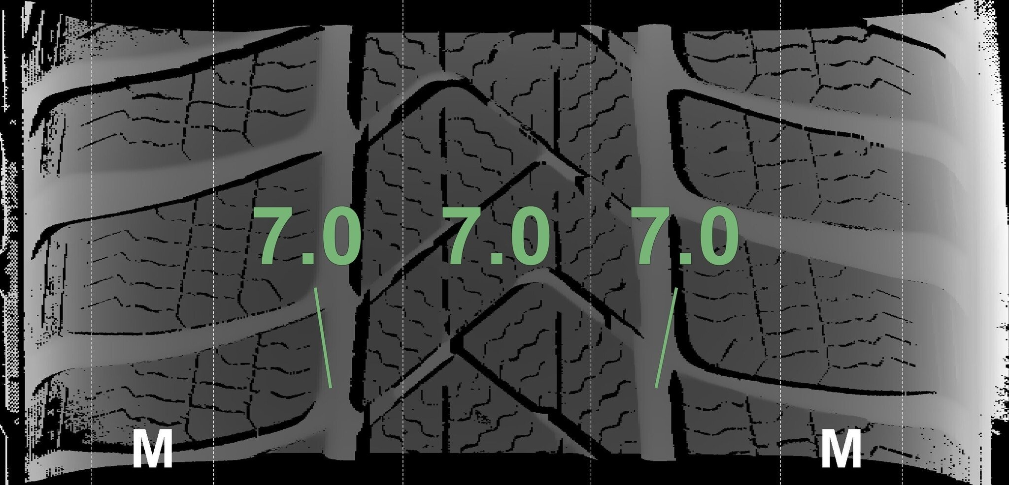 Die gemessenen Profiltiefen und Details zu den Felgen sind oben abgebildet.