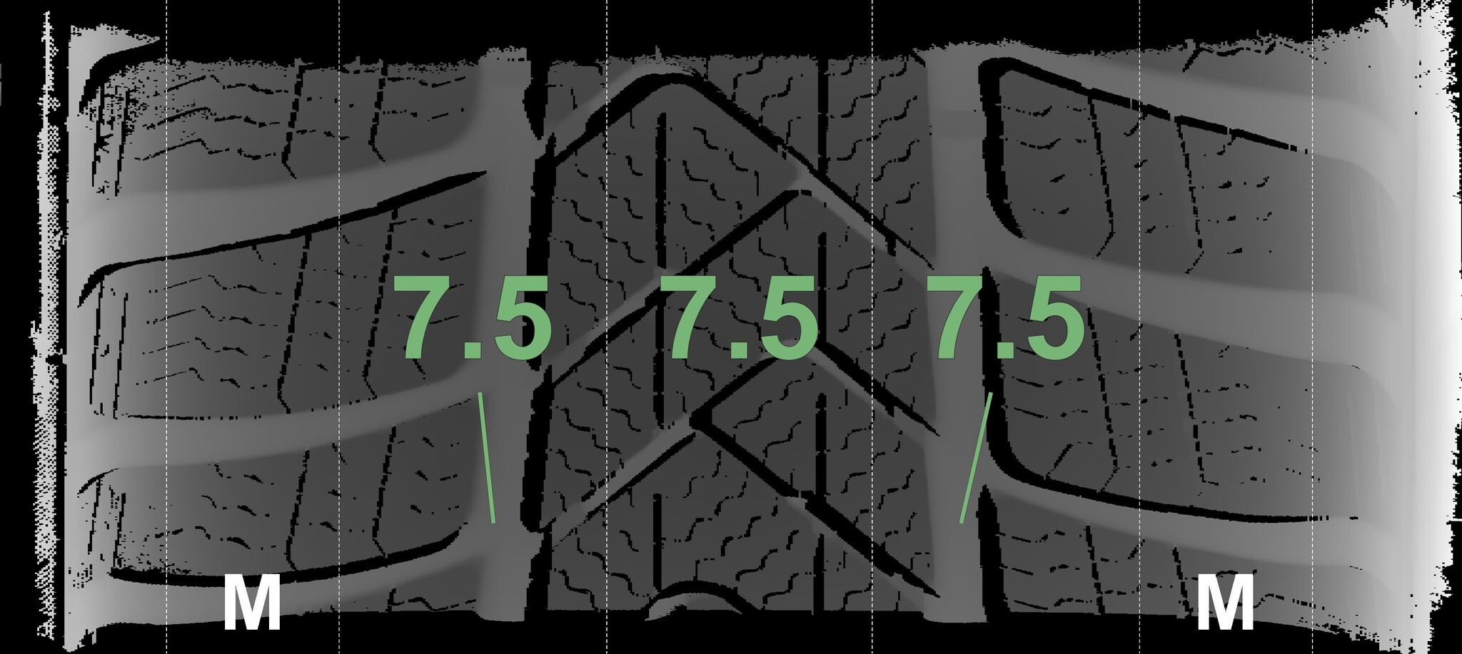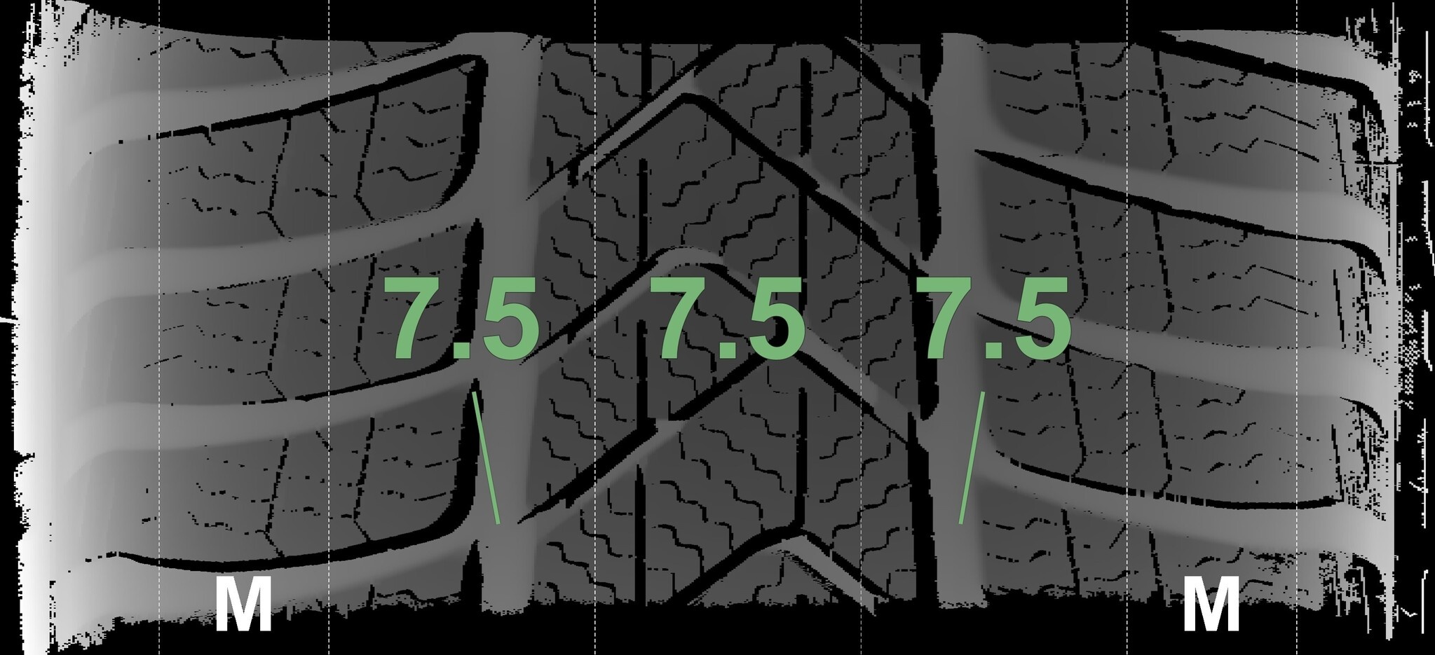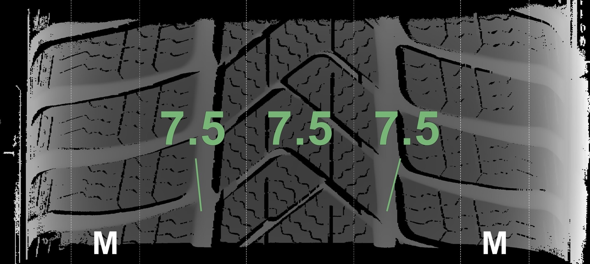 Zustand | Profiltiefe | DOT | Hinterachse Rechts | Neu | 7,5 mm | 2120 |