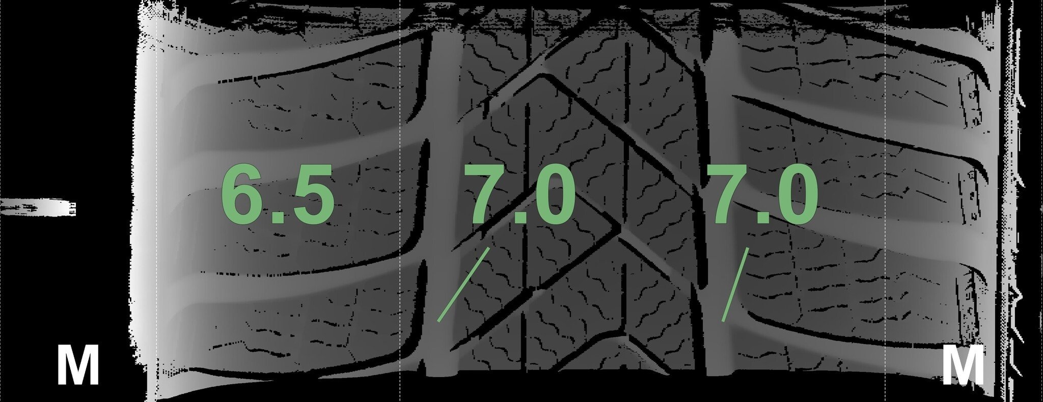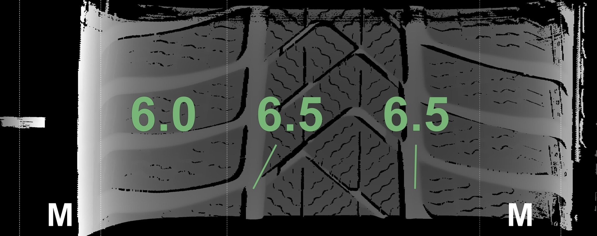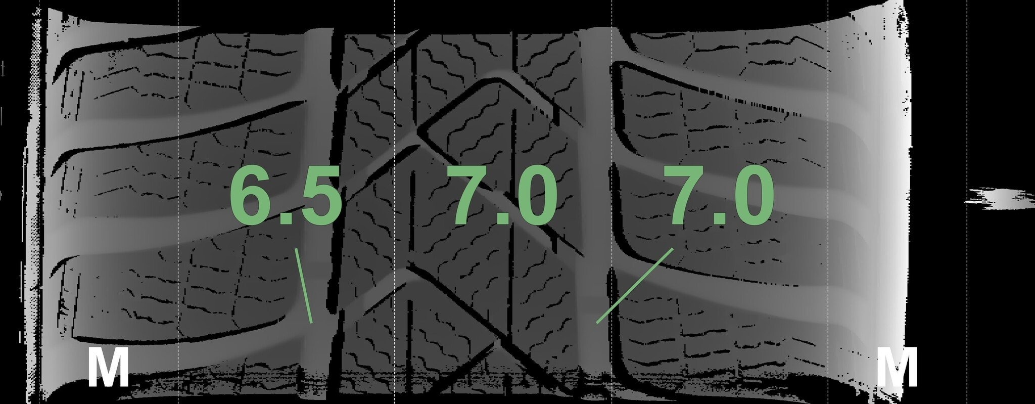 Die gemessenen Profiltiefen und Details zu den Felgen sind oben abgebildet.