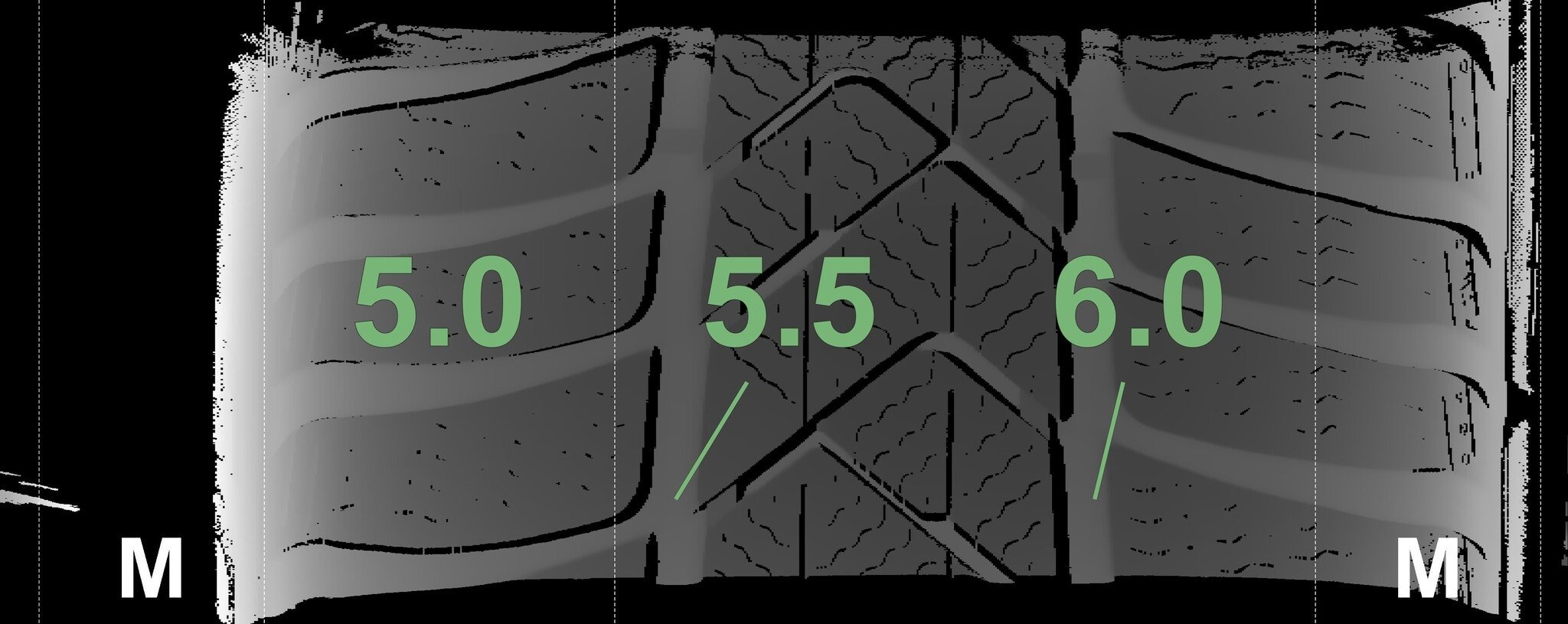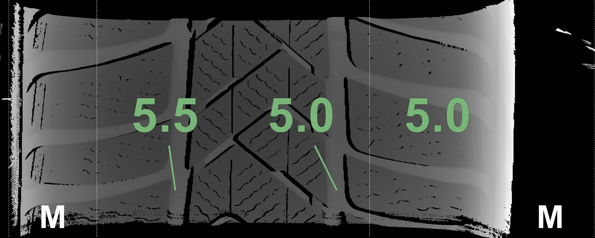 Die gemessenen Profiltiefen und die Details der Felgen sind oben angezeigt.