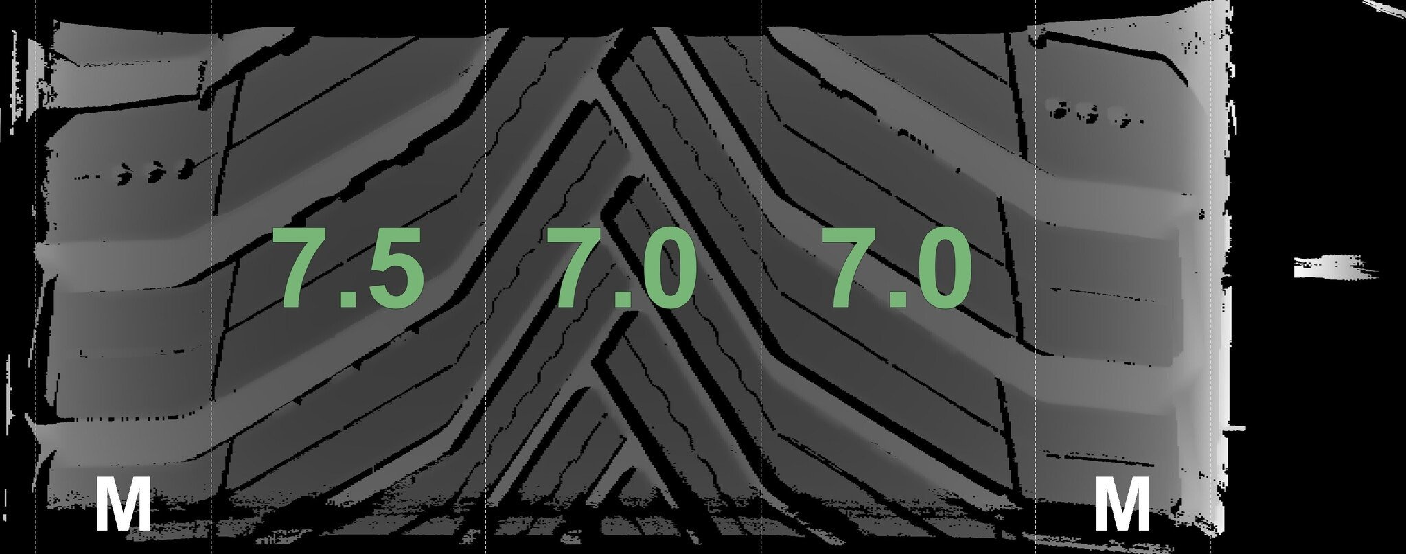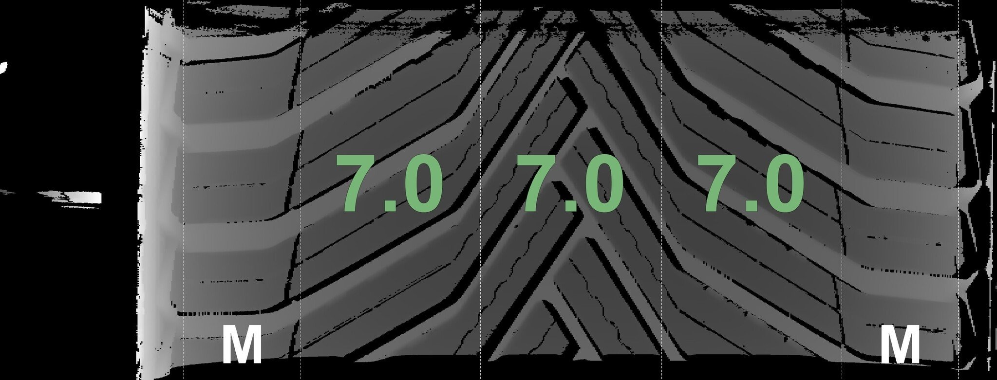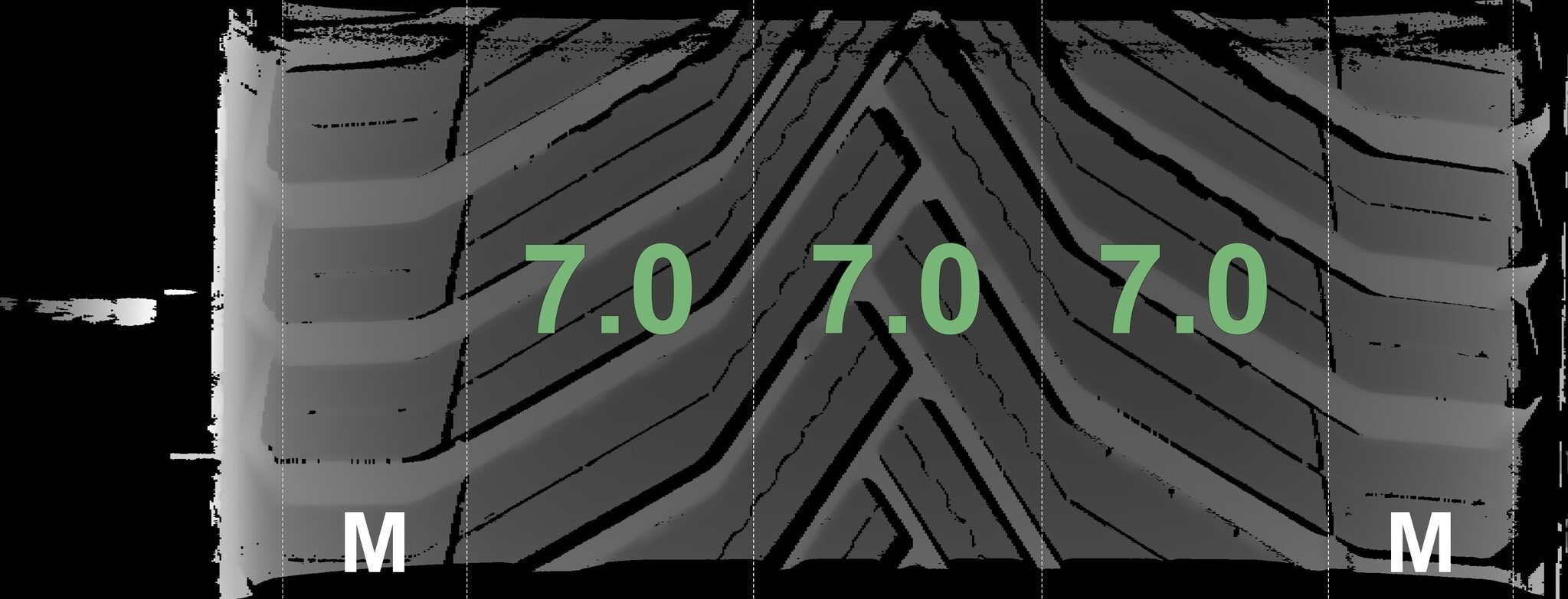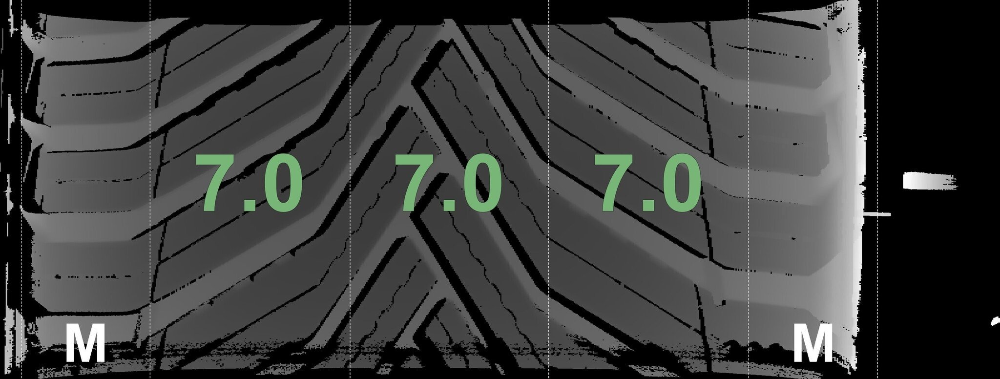 | Zustand | Profiltiefe | DOT | Vorderachse Links | Neu | 7,0 mm | 4125 |