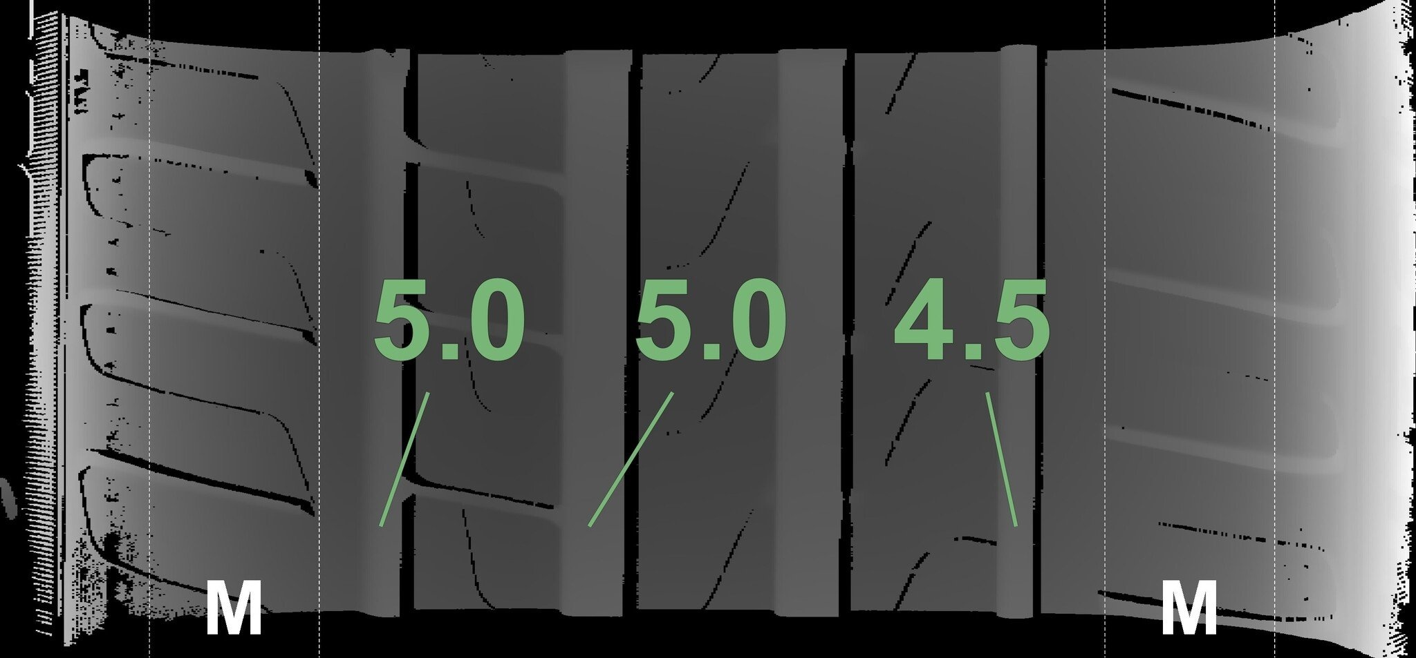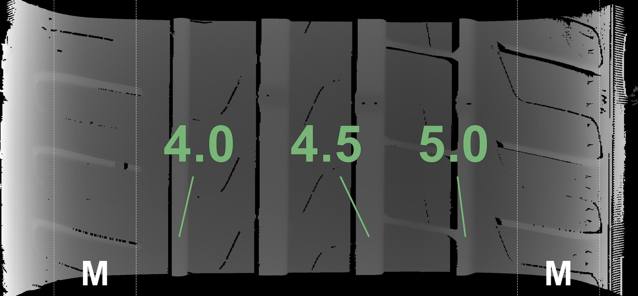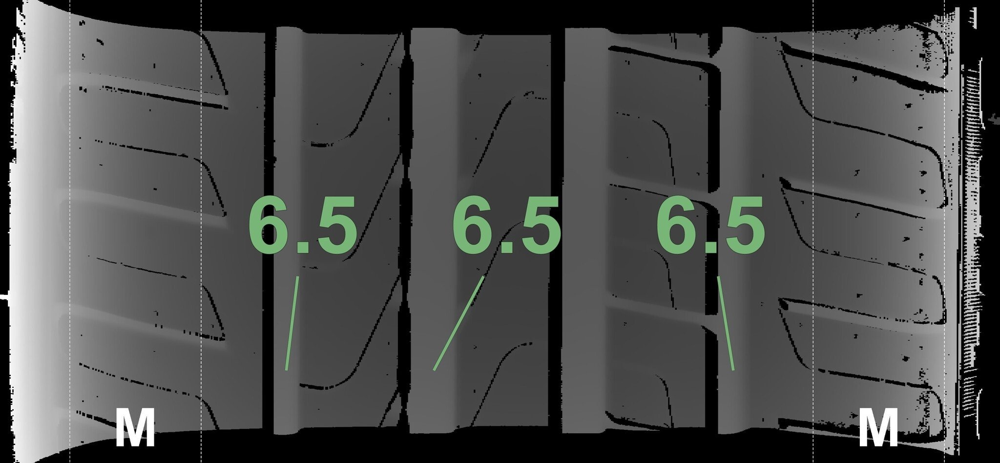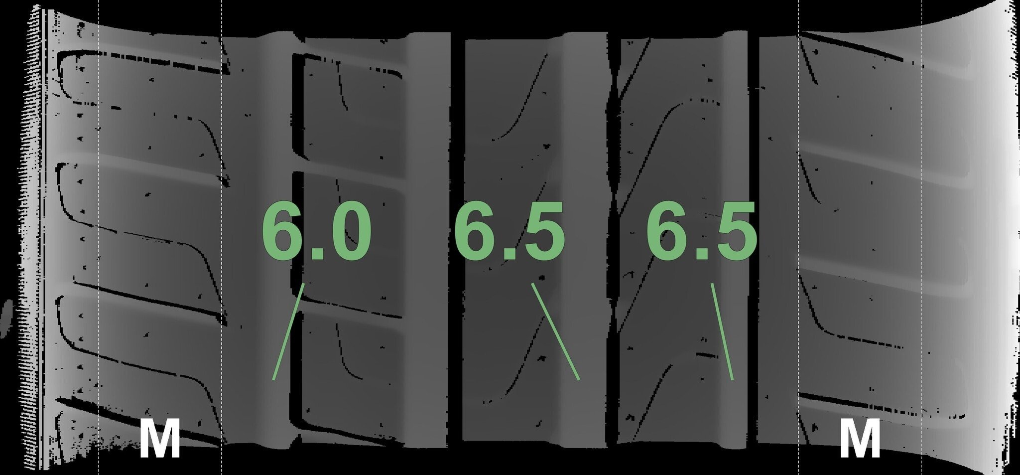 Die gemessenen Profiltiefen und Details zu den Felgen sind oben abgebildet.
