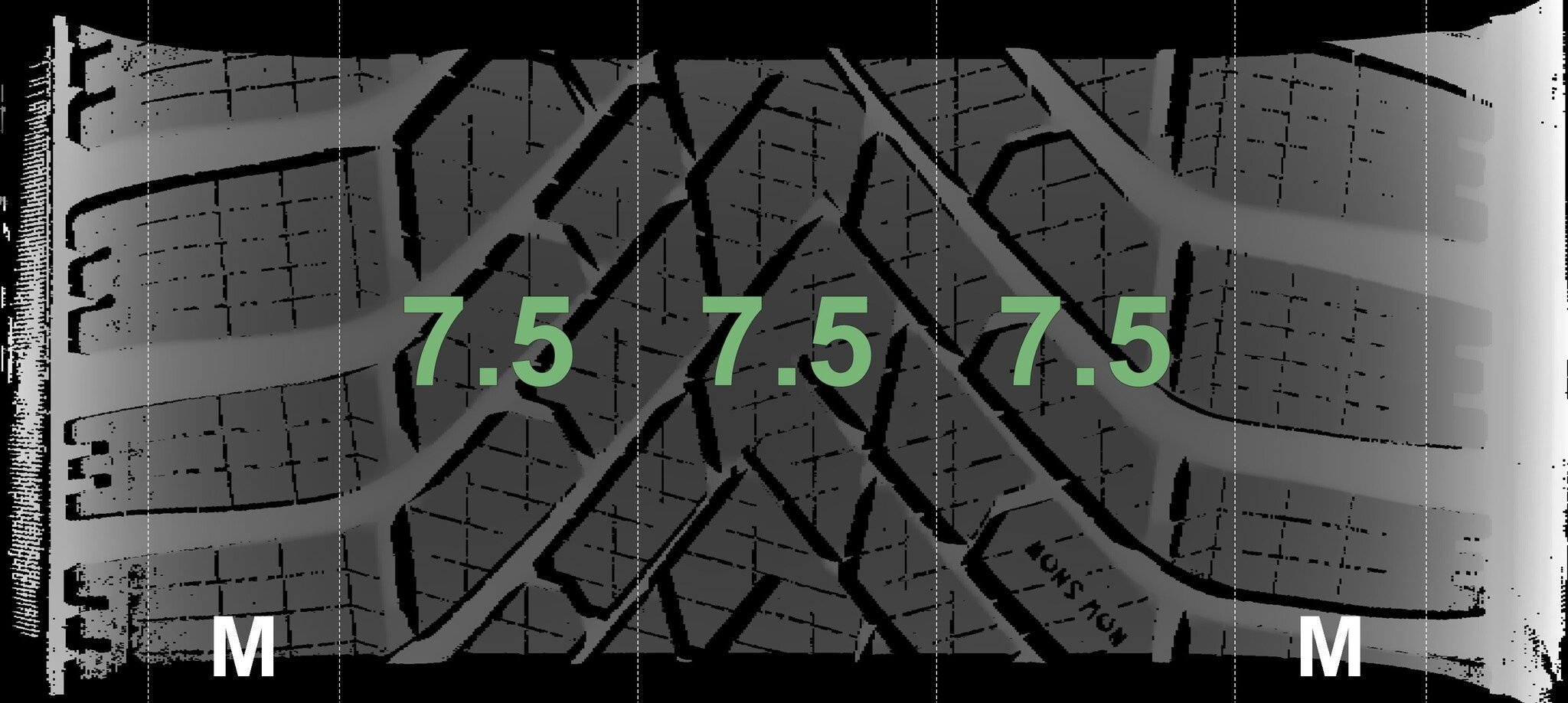 Zustand | Profiltiefe | DOT | Hinterachse Rechts | Neu | 7,5 mm | 3924 |