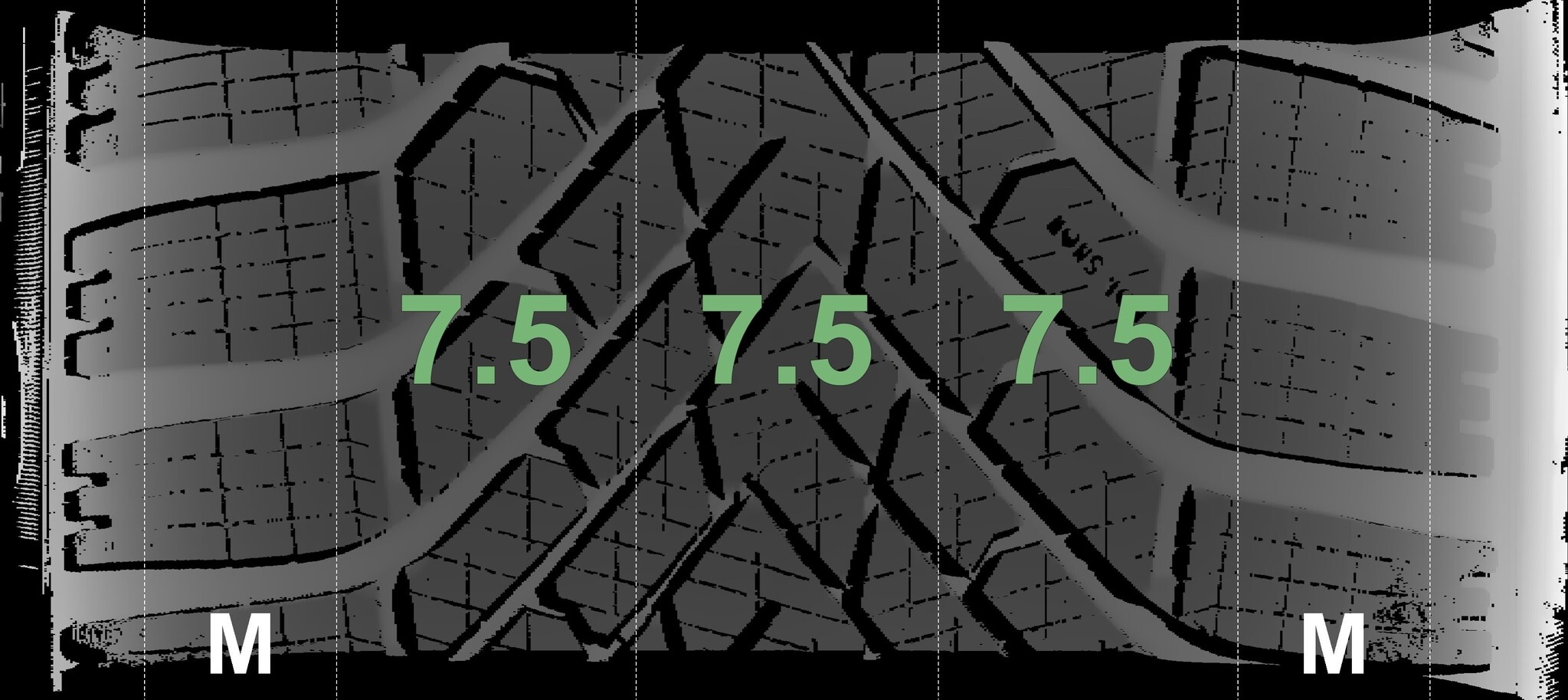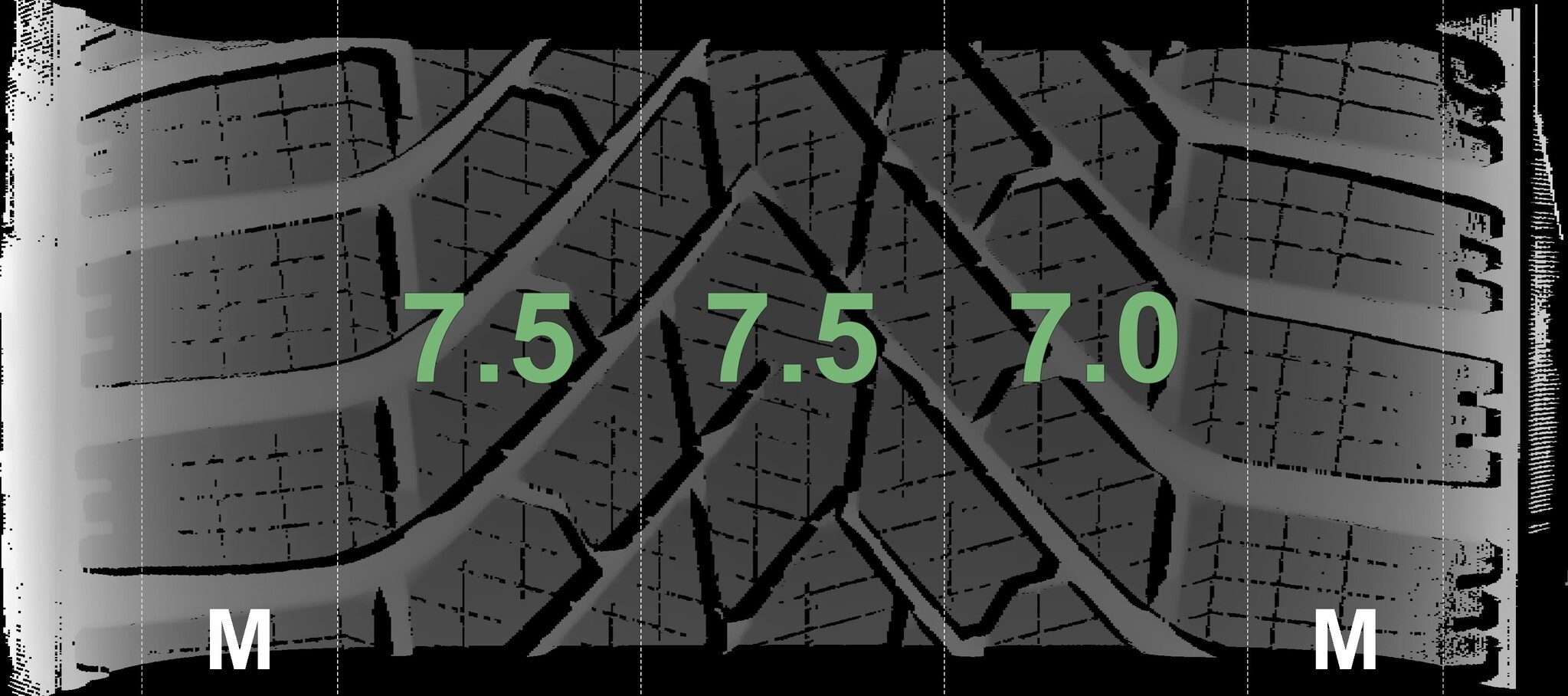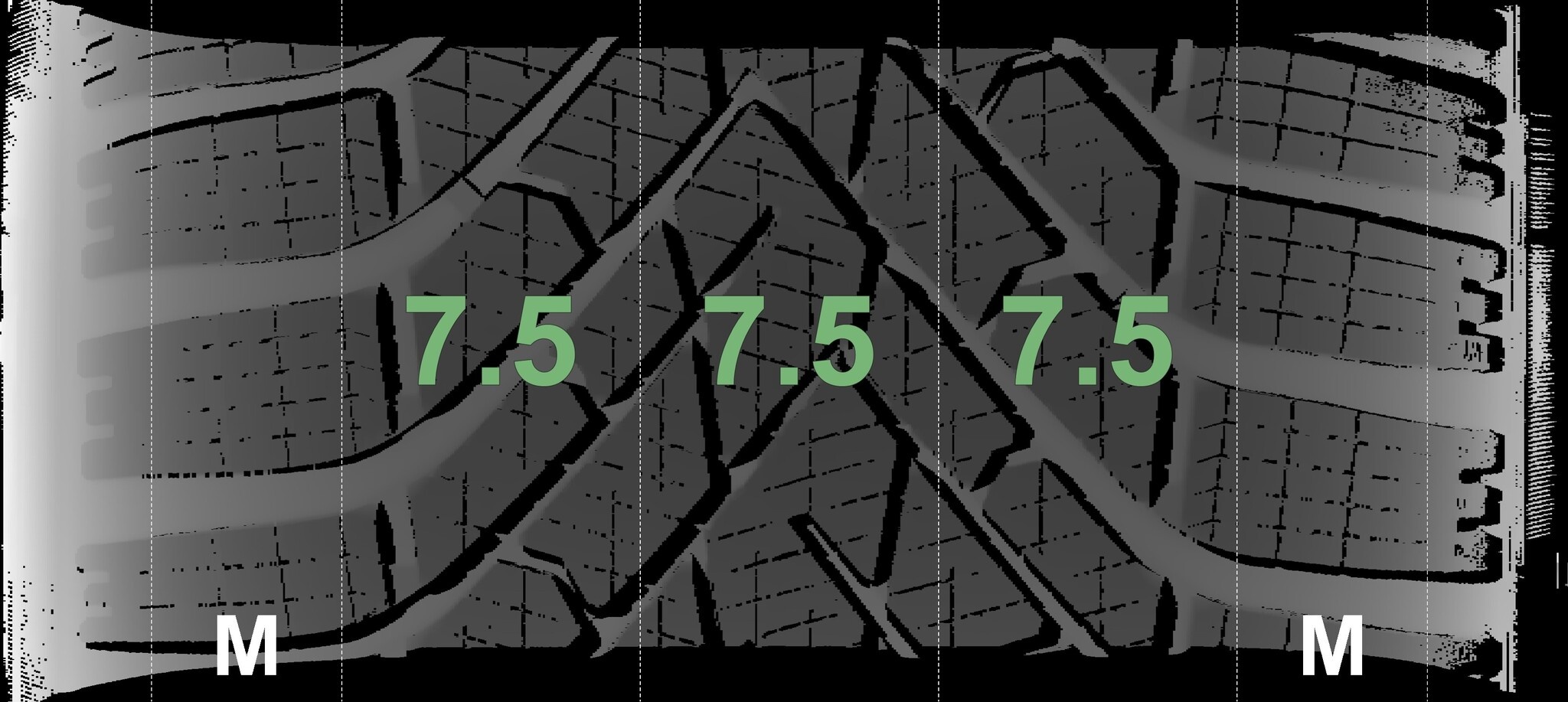 Zustand | Profiltiefe | DOT | Vorderachse Rechts | Neu | 7,5 mm | 3924 |