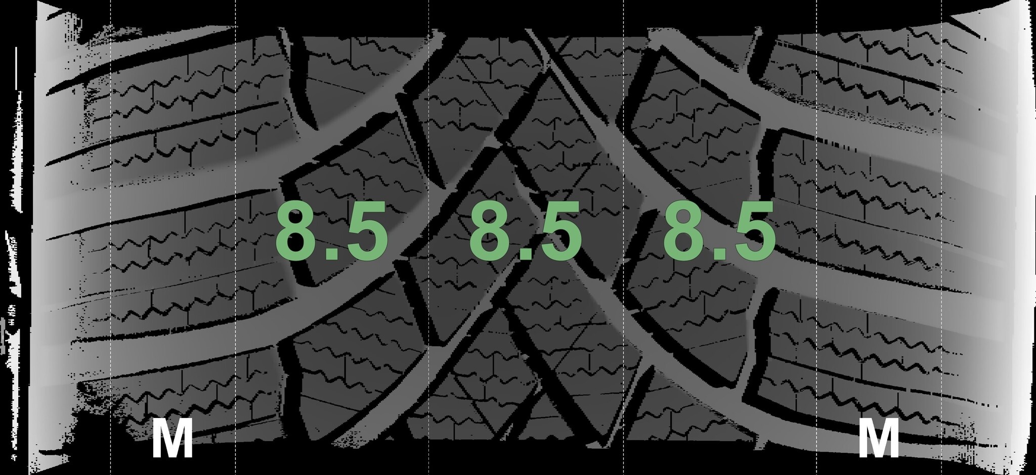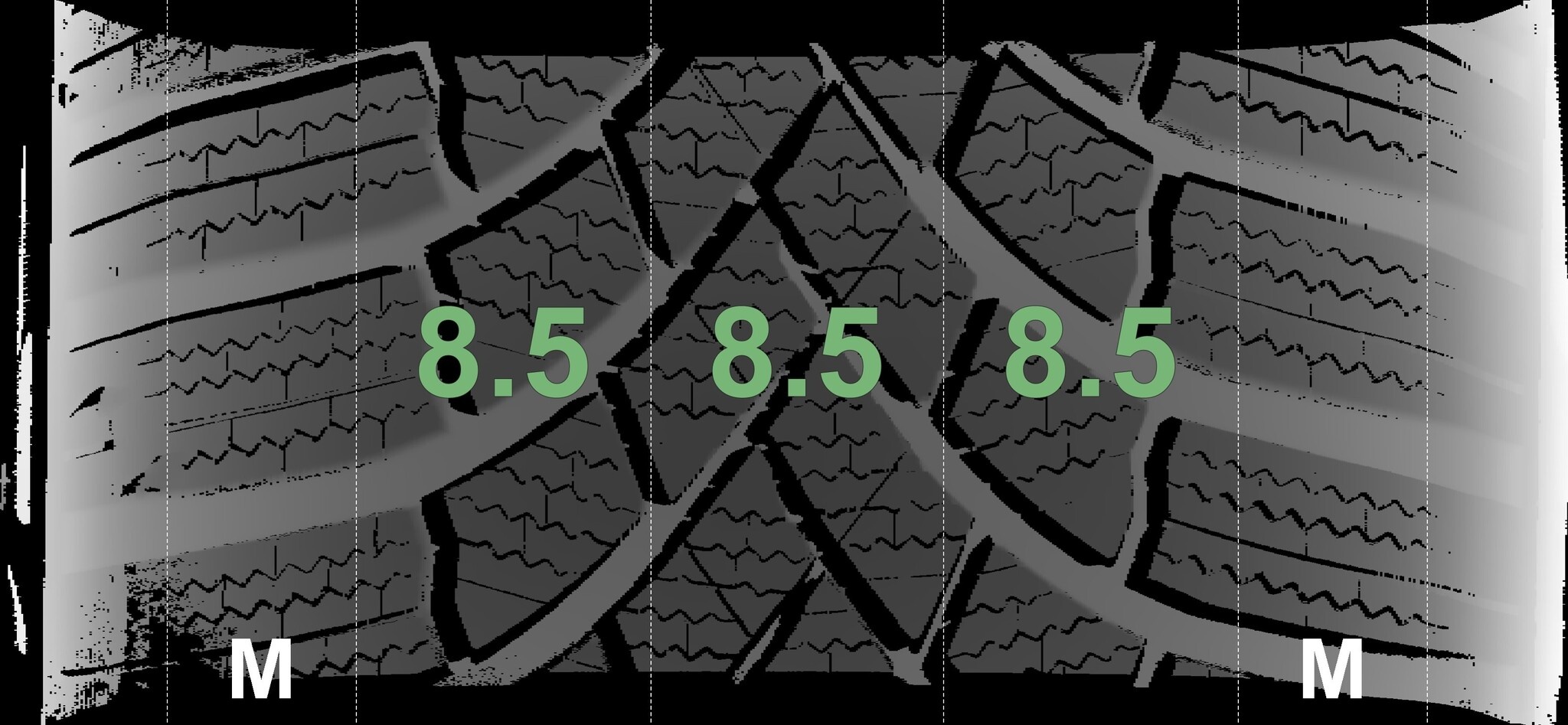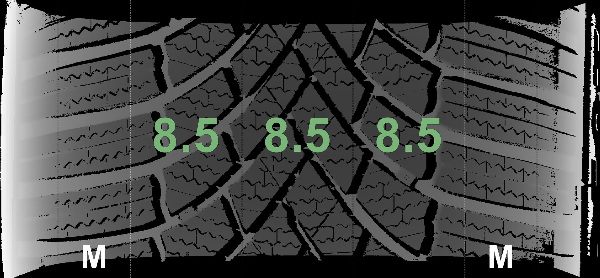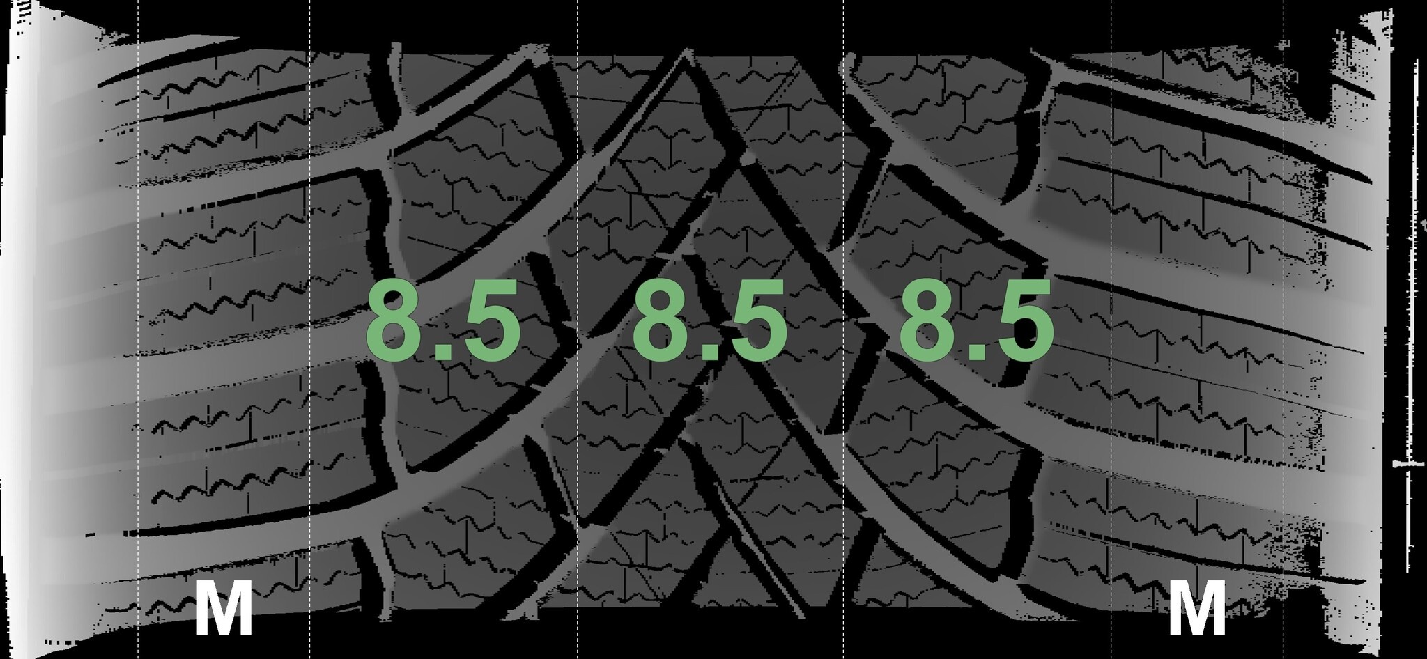 | Zustand | Profiltiefe | DOT | Vorderachse Links | Neu | 8.5 mm | 3425 |