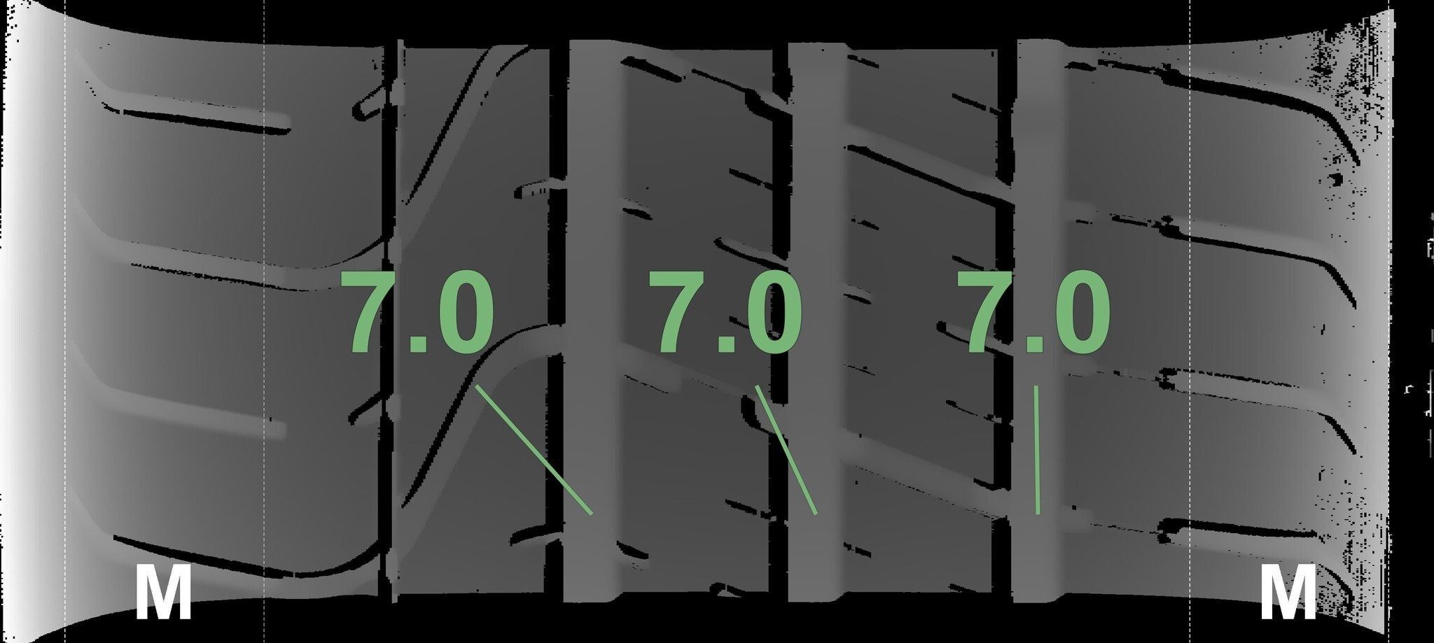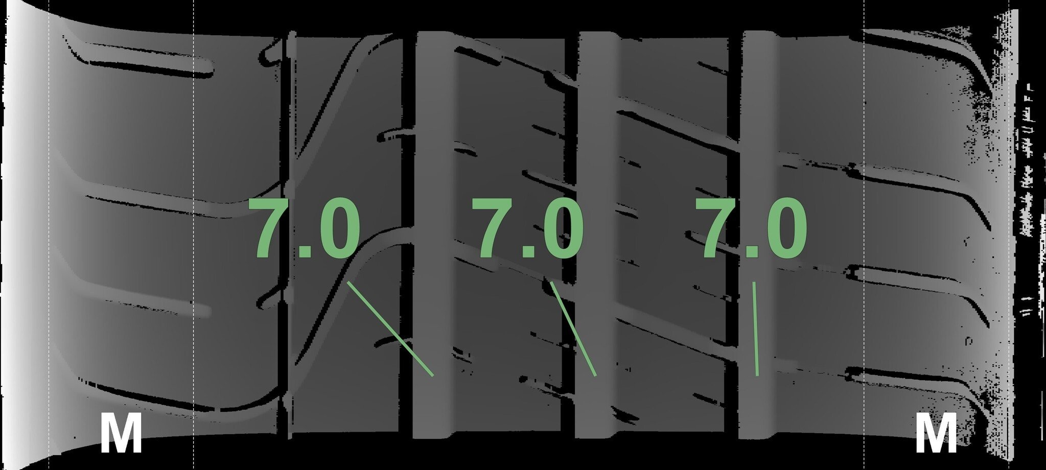 Die gemessenen Profiltiefen und Details zu den Felgen sind oben abgebildet.