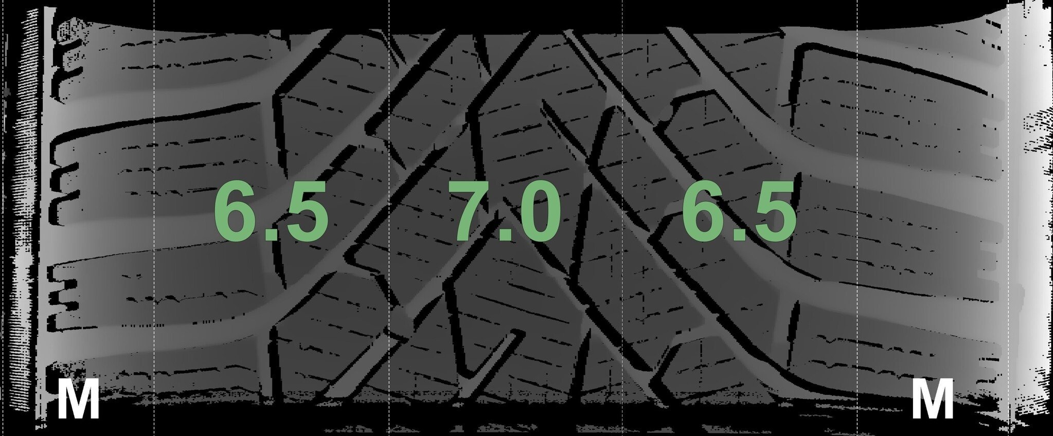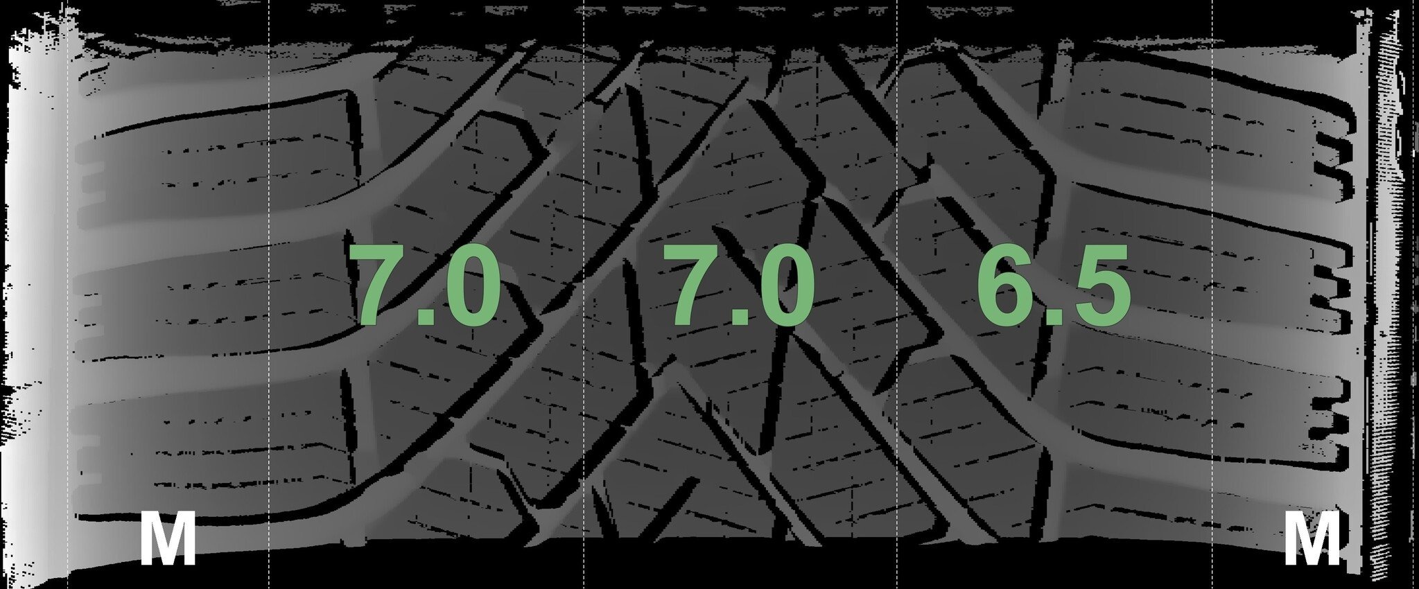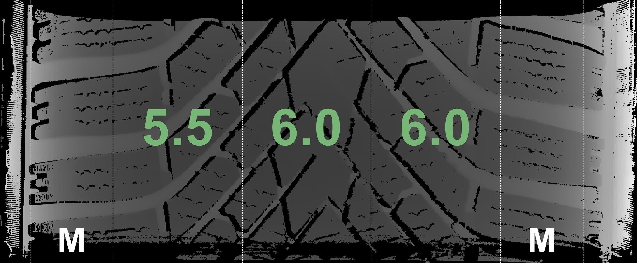 Die gemessenen Profiltiefen und die Details der Felgen sind oben angegeben.