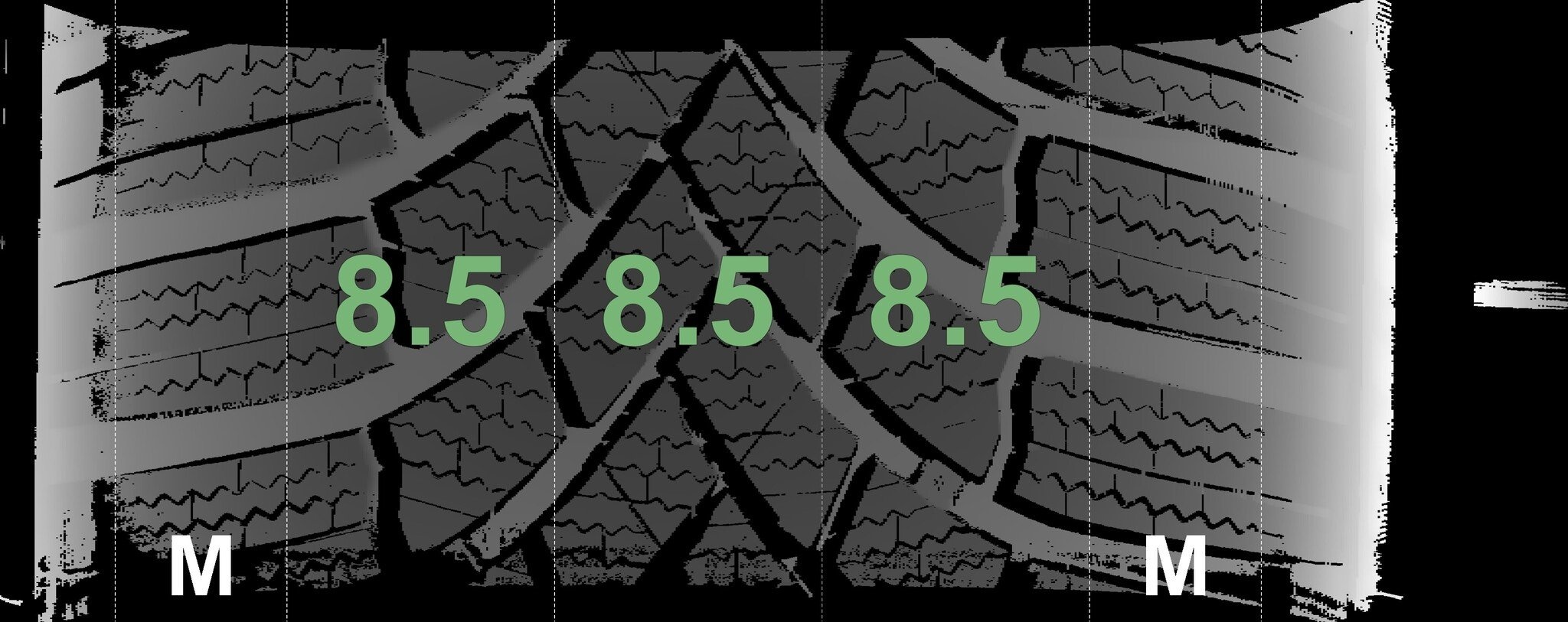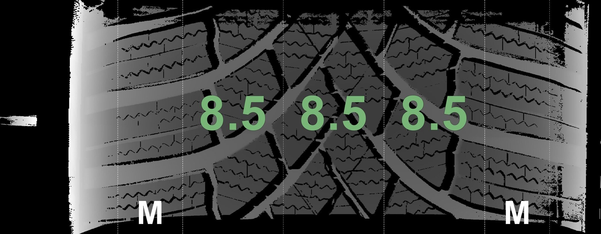 | Zustand | Profiltiefe | DOT | Vorderachse Links | Neu | 8.5 mm | 0225 |