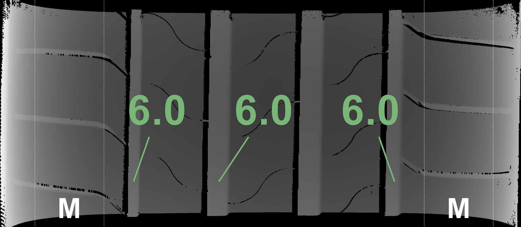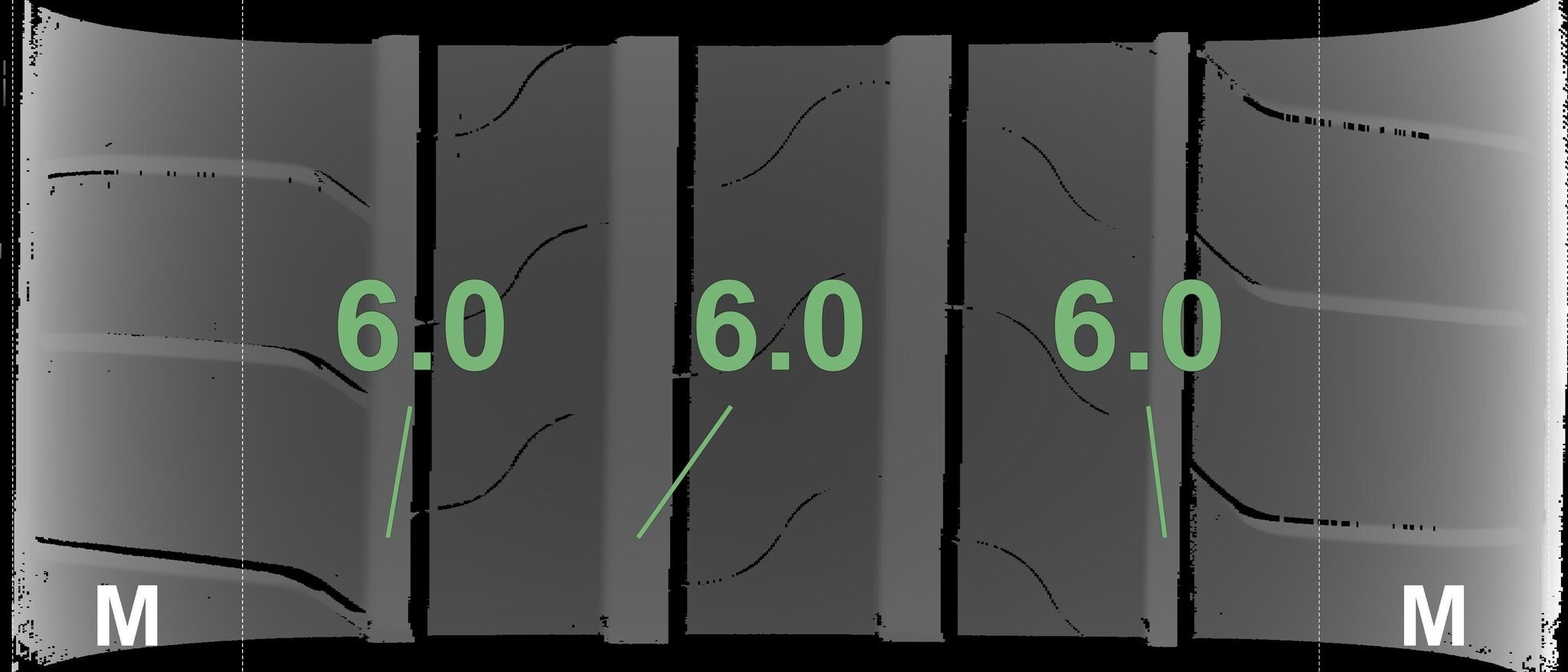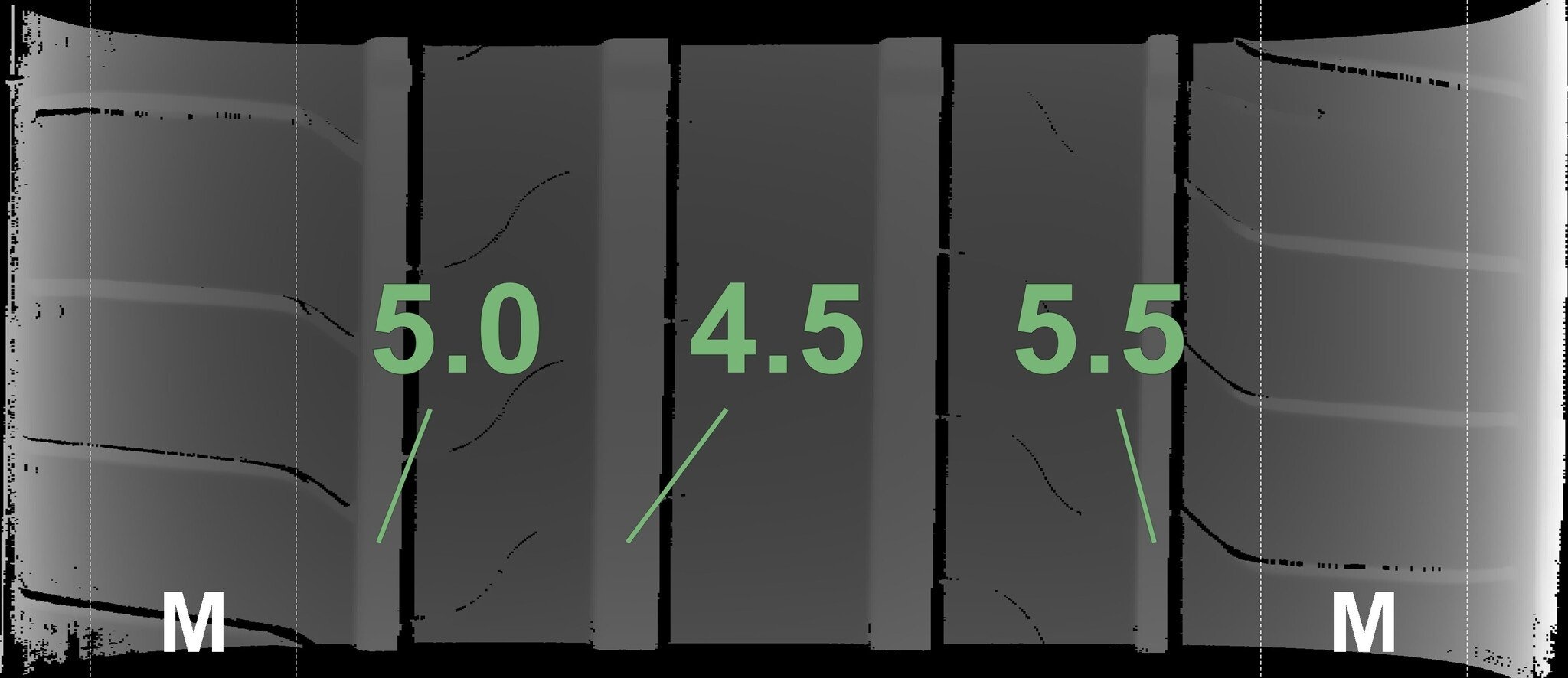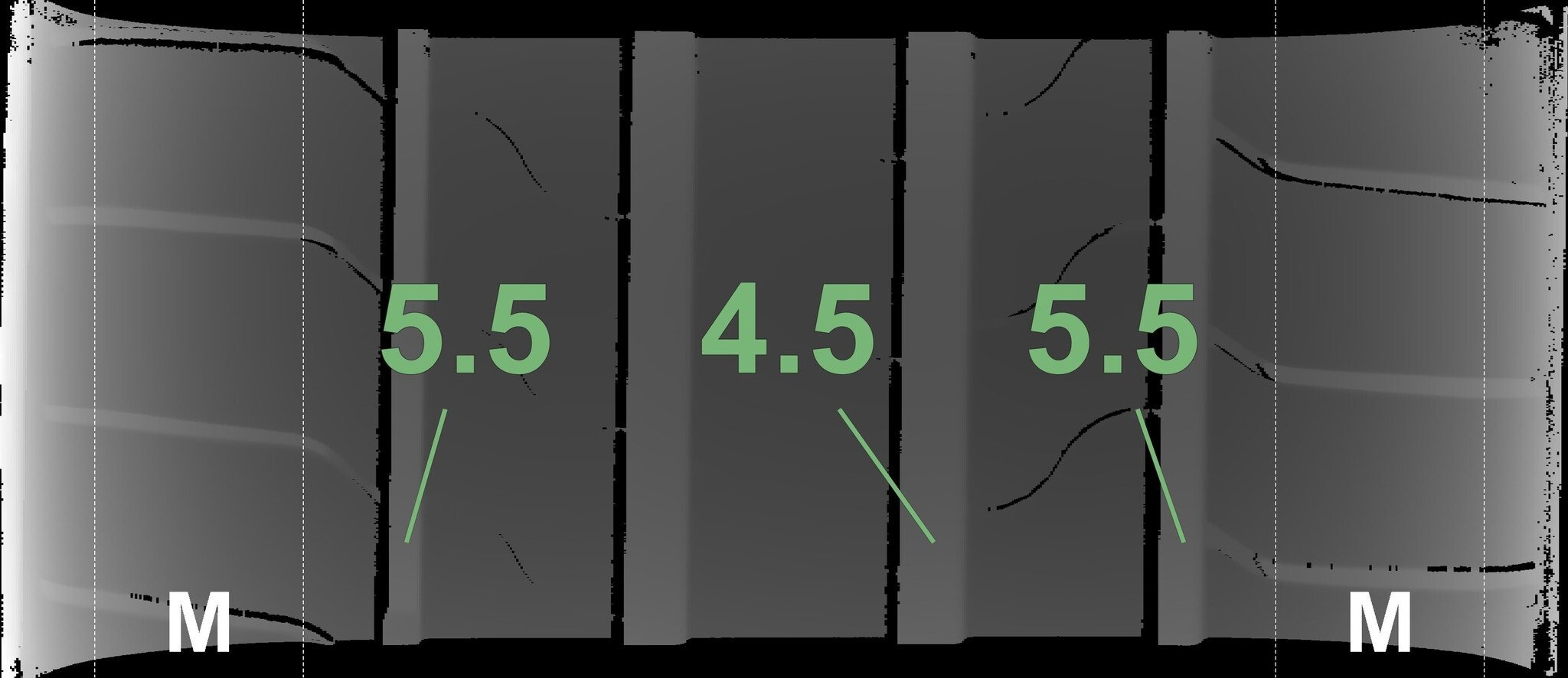 Die gemessenen Profiltiefen und die Details der Felgen sind oben angegeben.