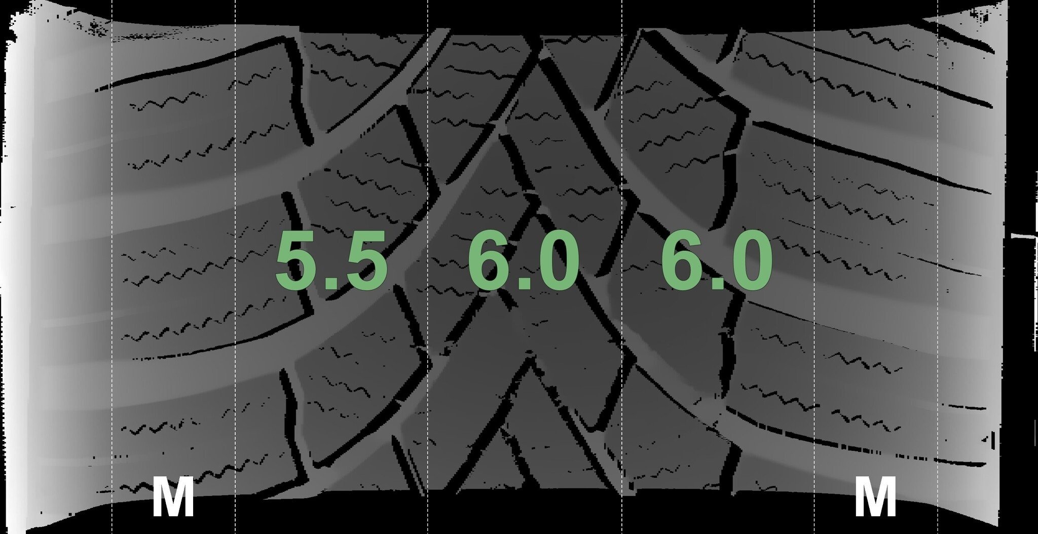 Die gemessenen Profiltiefen und die Details der Felgen sind oben dargestellt.
