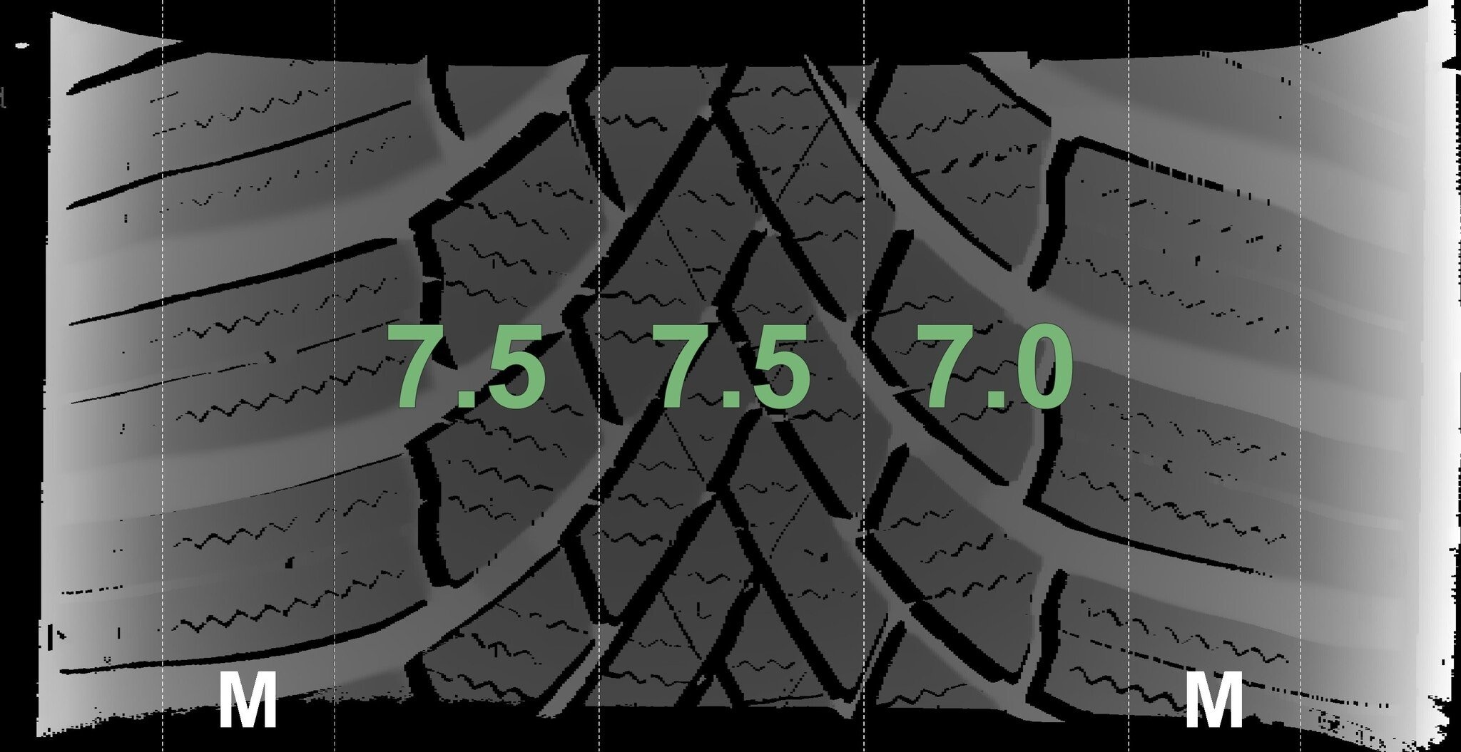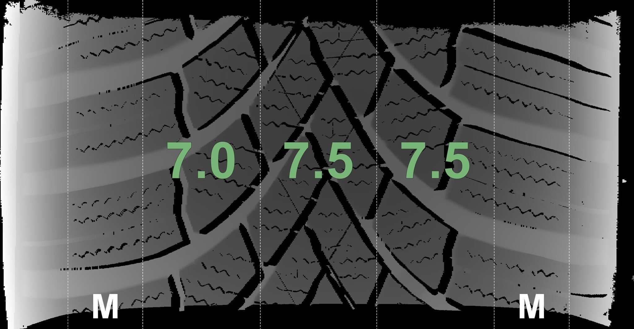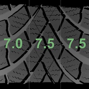 Die gemessenen Profiltiefen und die Details der Felgen sind oben dargestellt.
