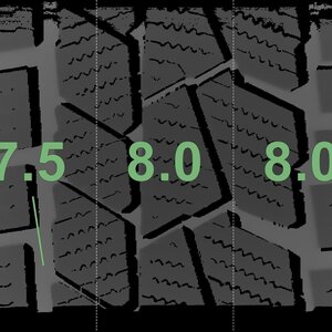 Die gemessenen Profiltiefen und die Details der Felgen sind oben dargestellt.