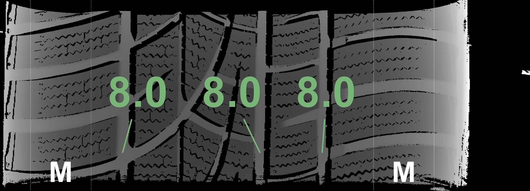 | Zustand | Profiltiefe | DOT | Vorderachse Links | Neu | 8.0 mm | 4424 |