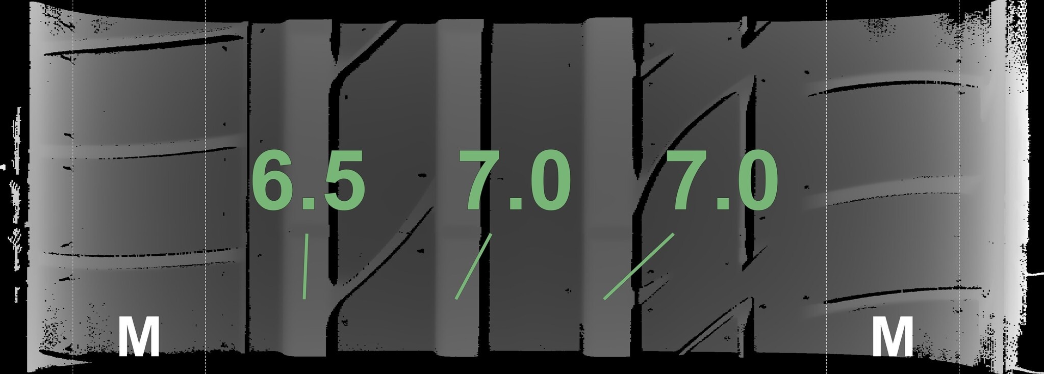 Zustand | Profiltiefe | DOT | Hinterachse Rechts | Neu | 6,5 mm | 0524 |