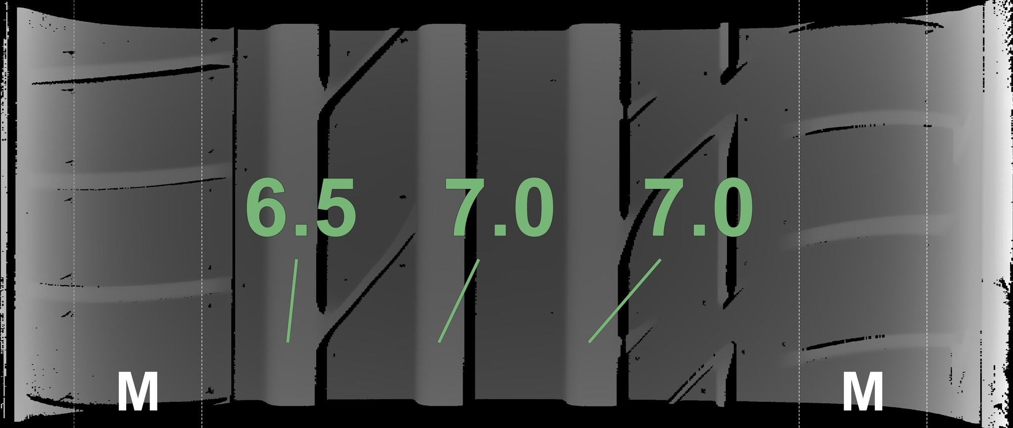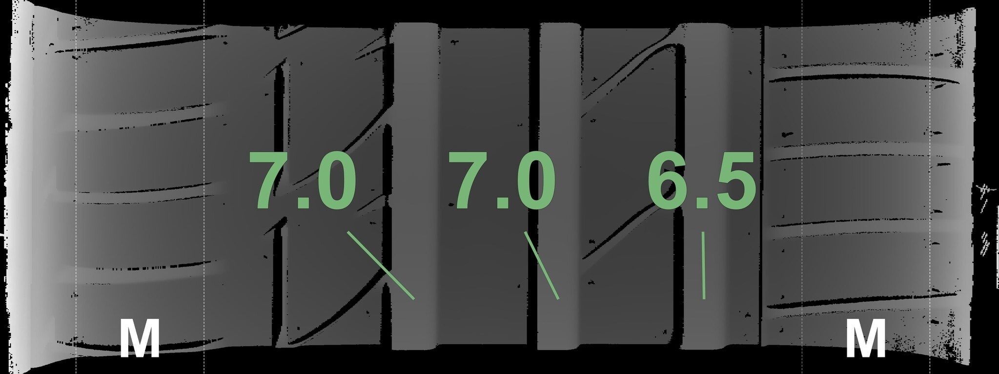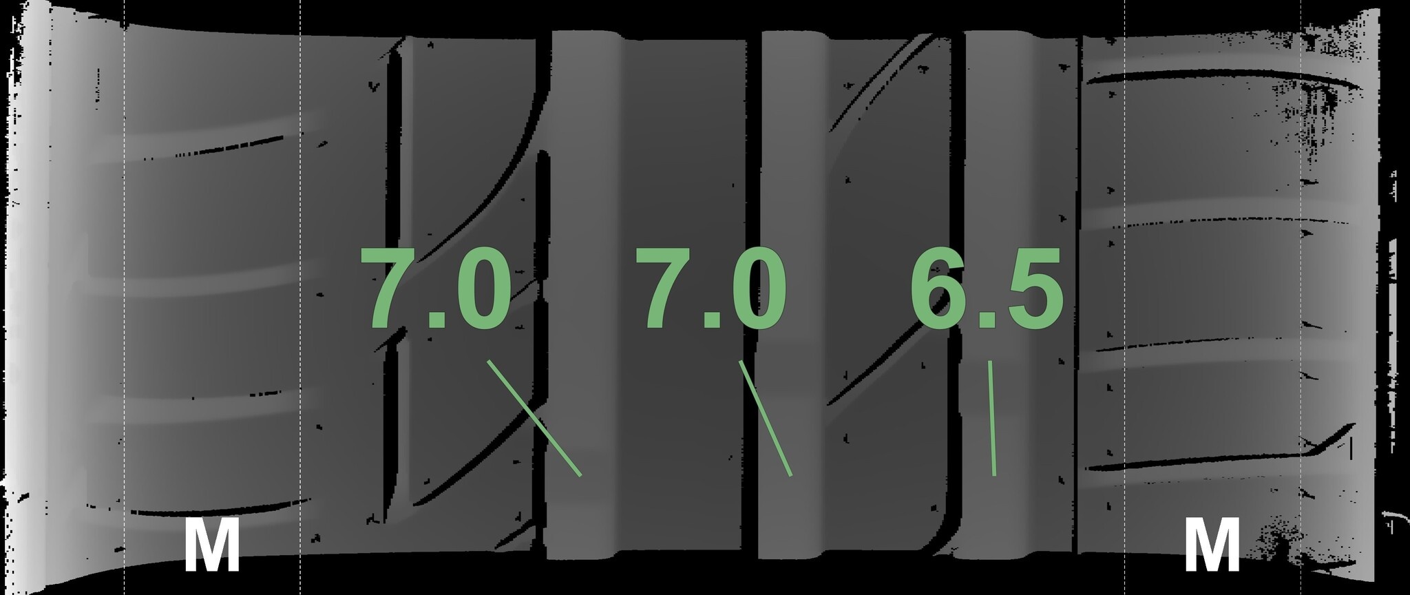 Die gemessenen Profiltiefen und Details zu den Felgen sind oben abgebildet.