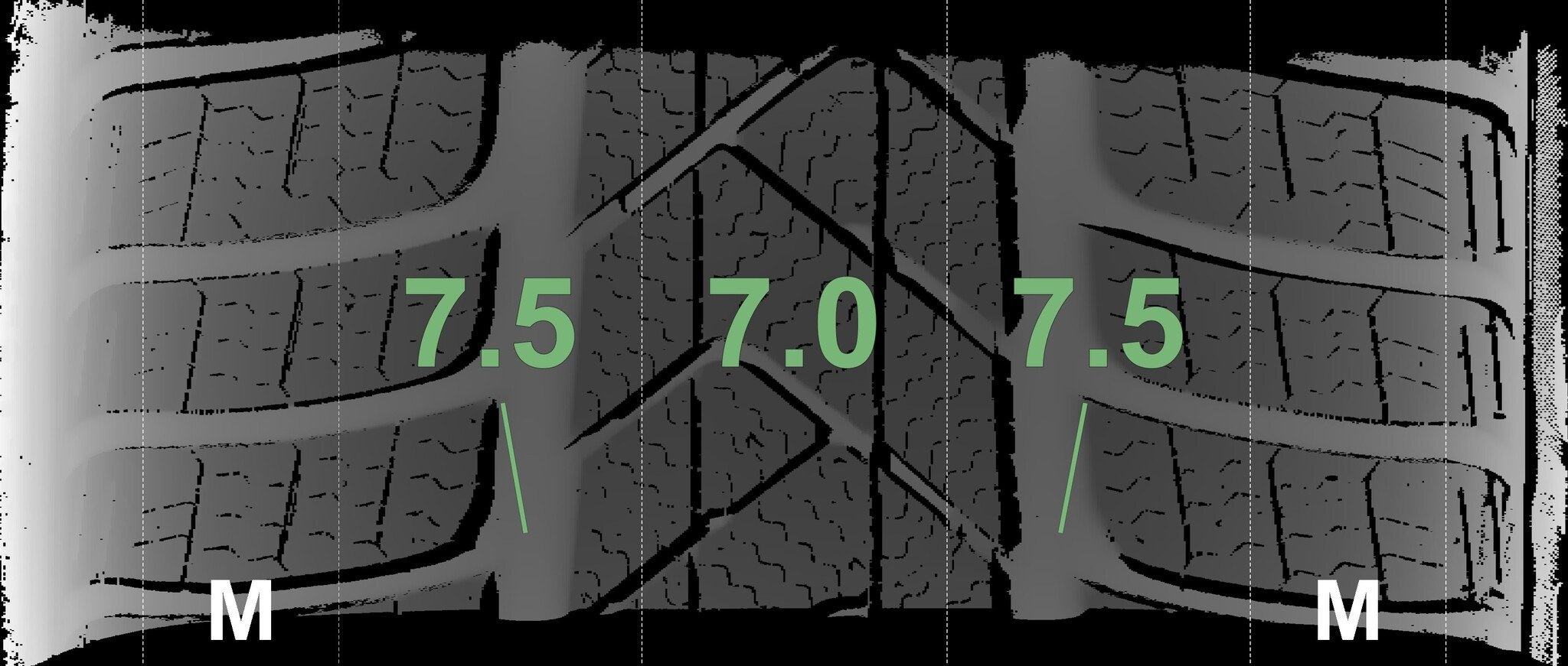 | Zustand | Profiltiefe | DOT | Vorderachse Links | Neu | 7.2 mm | 4425 |