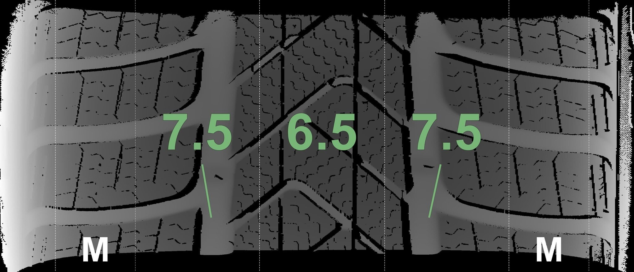 | Zustand | Profiltiefe | DOT | Hinterachse Links | Neu | 7.3 mm | 4425 |